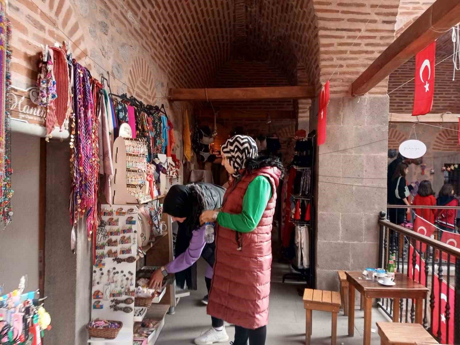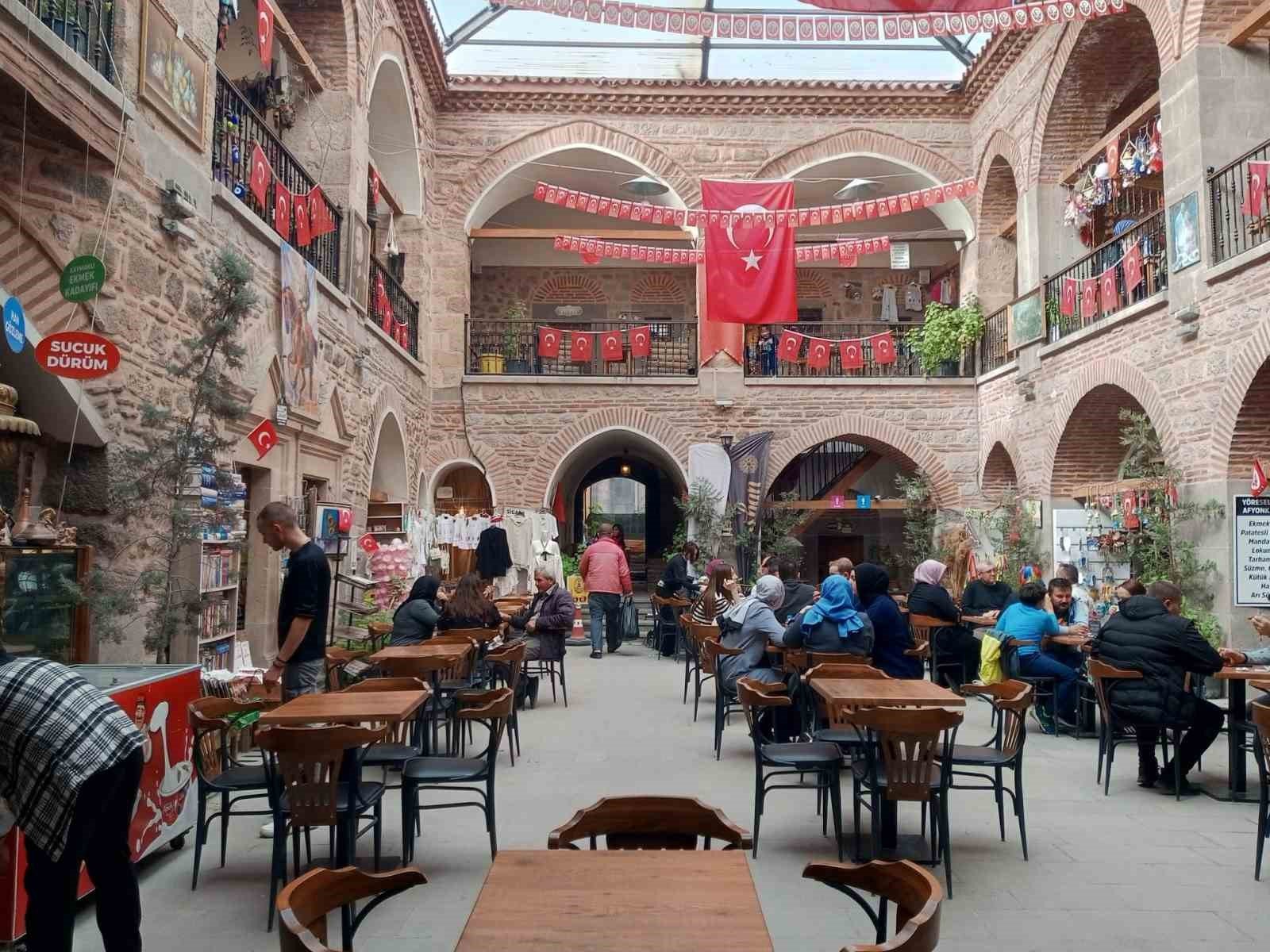Öte yandan, hana gelen ziyaretçiler ise alışverişlerini yaptıktan sonra kafede tarihin izlerini seyrederek sıcak ve soğuk içeceklerini yudumluyor. – İHA
