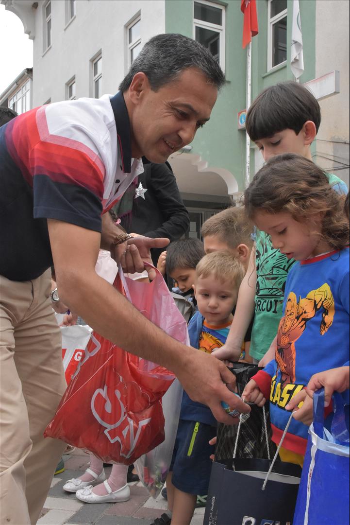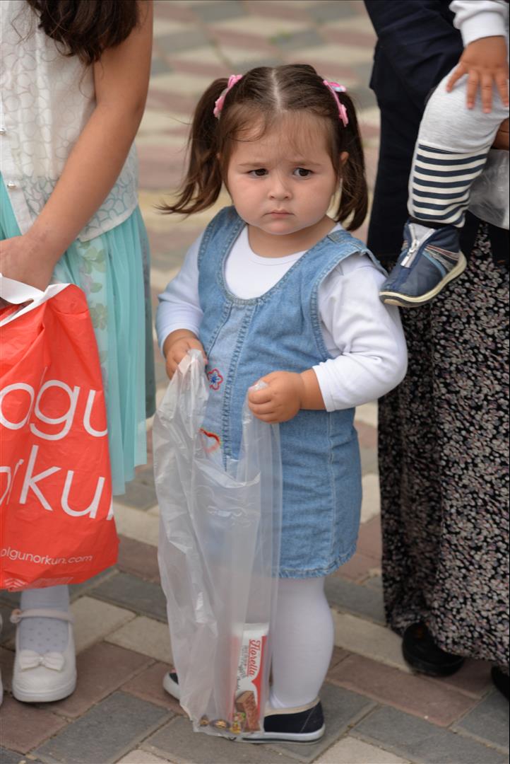 Türkmen, “İki yıldır buradayım ve bu adete şahit oluyorum. Çocuklarla beraber onların heyecanını yaşıyorum. Sıraya giren her çocuğun elindeki poşetlere çikolata ve şeker bırakıyoruz. Bende iki çocuğumla birlikte geldim, açıkçası haftalardır bunu bekliyorduk.” diye konuştu.