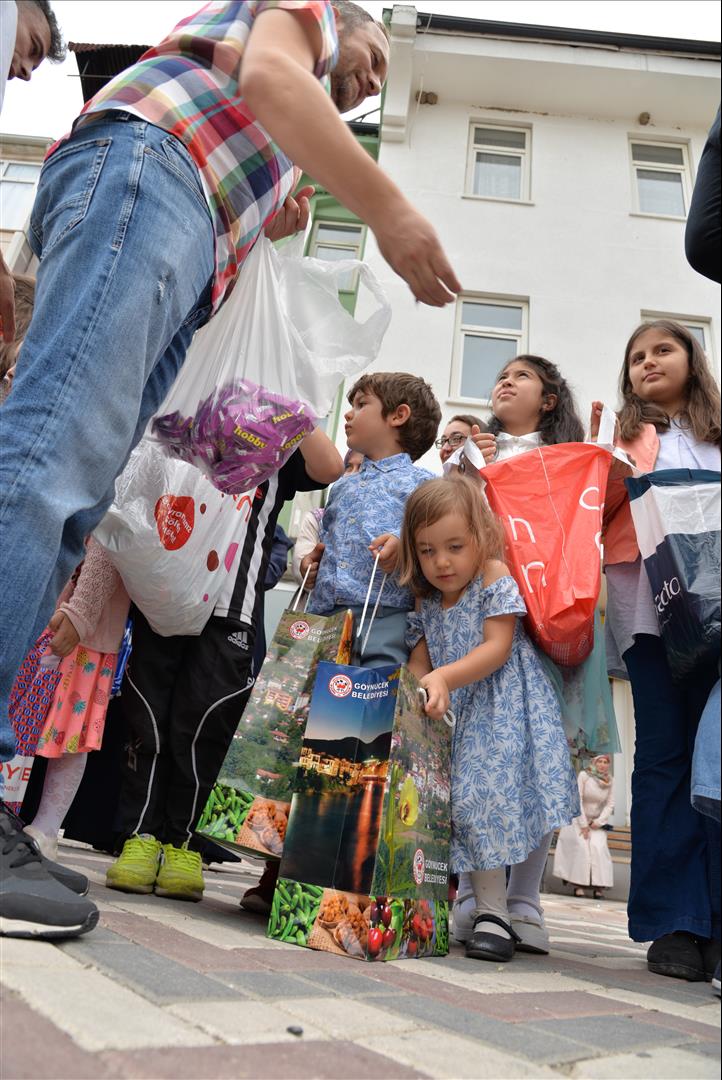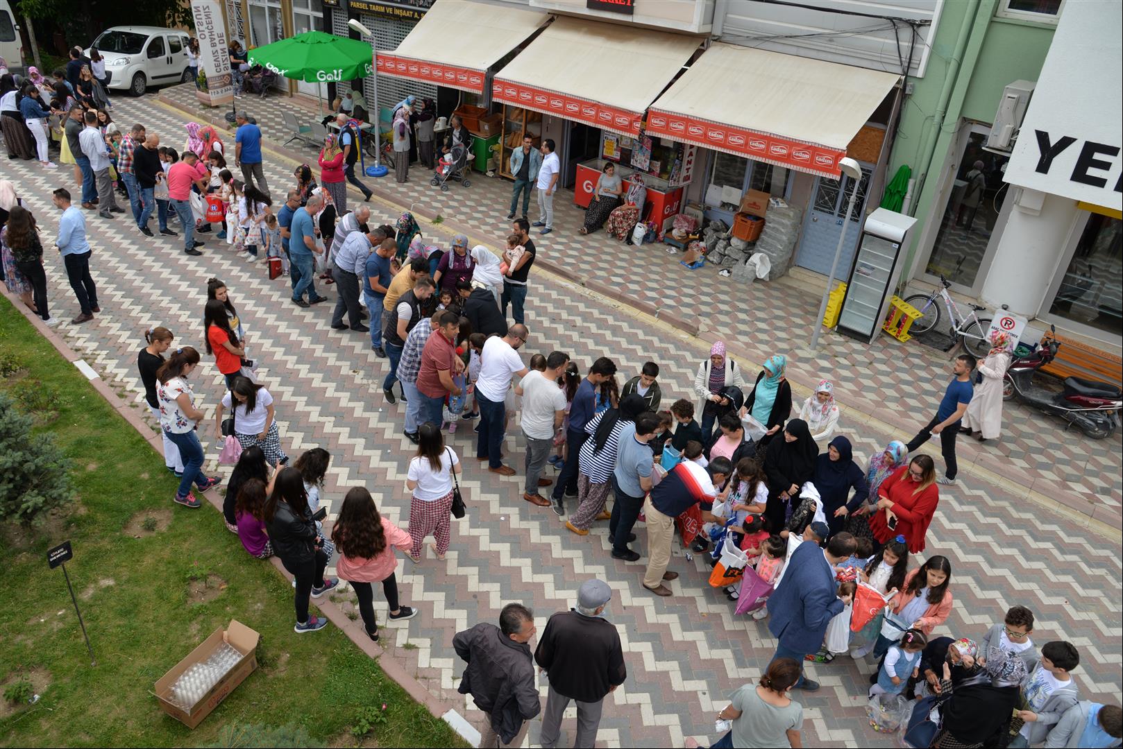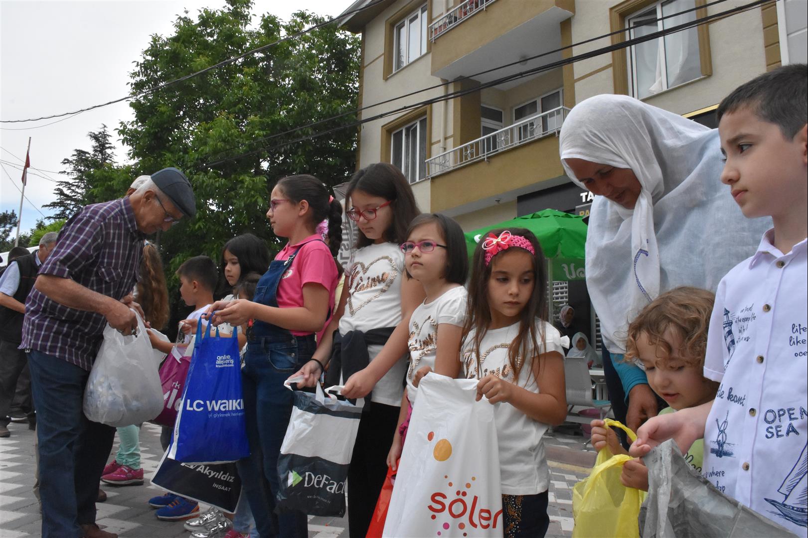 Bilecik’in Yenipazar ilçesinde, 2 asırdır sürdürülen arife günü geleneği kapsamında, ilçe meydanında toplanan ve uzun kuyruk oluşturan çocuklara şeker dağıtıldı.