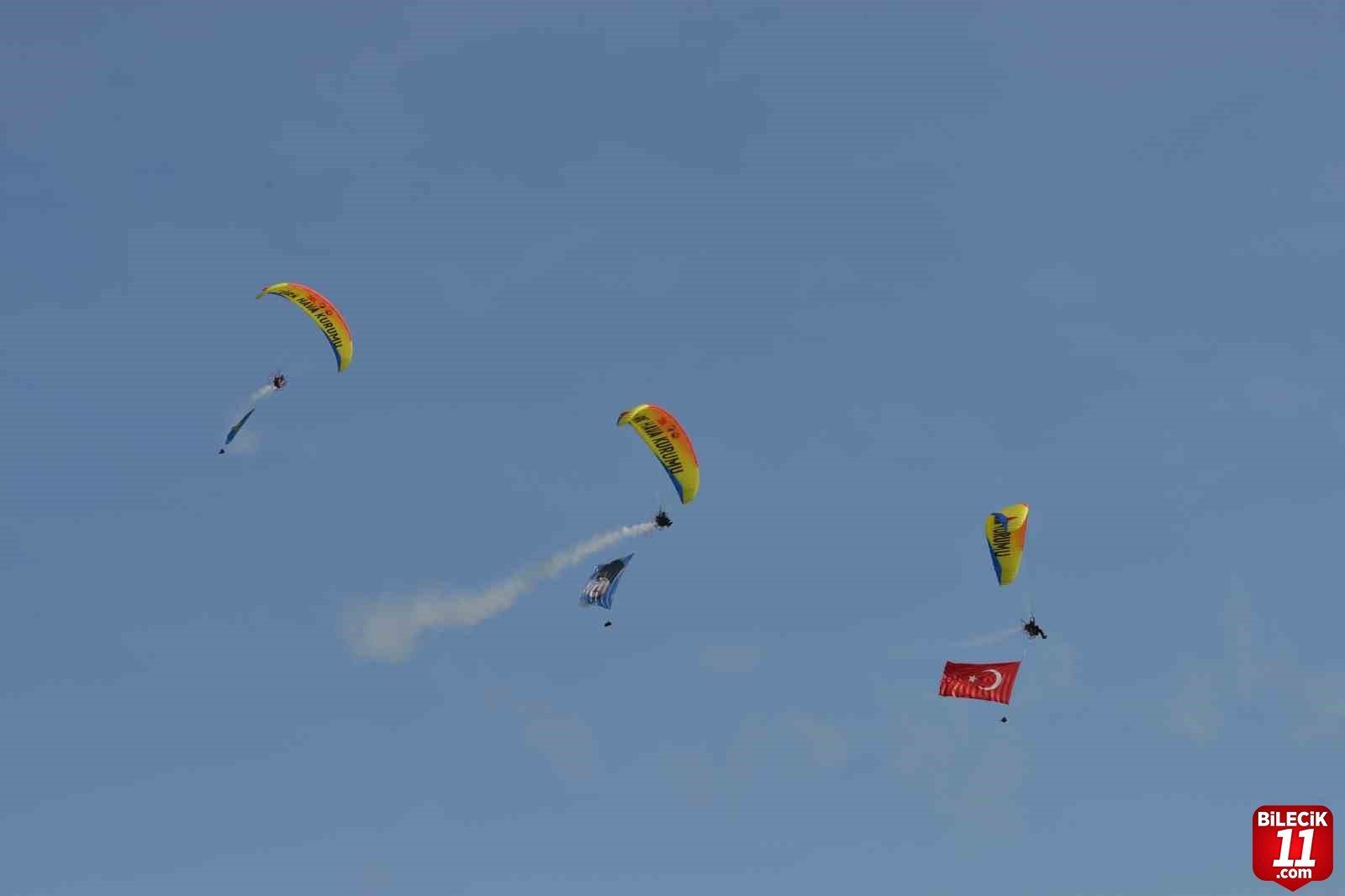Eskişehir’in İnönü ilçesinde düzenlenen Türk Hava Kurumu Havacılık Festivali motorlu yamaç paraşütü gösterileriyle başladı. Sabah erken saatlerde çok sayıda vatandaş festival alanına geldi. Festivalde uçuş gösterisi yapacak olan helikopter ve uçaklar da seyircilerin ardından alana giriş yapmaya başladı. Saat 12.00’da yapılacak olan açılış programı öncesi gösteri yapan motorlu yamaç paraşütü pilotlar, izleyenleri mest etti. Kimi vatandaşlar, gösteriyi takip etmek için dürbünleri ile gökyüzüne bakarken, kimisi de bu anları cep telefonu kameralarıyla kayıt altına aldı. Helikopter ve uçak gösterilerinin başlamasına az bir süre kala pilotları takip edecek vatandaşlar heyecanlarını gizleyemezken, festival alanında bulunan standlar ile havacılk sektörünü yakından tanıma fırsatı buldu. – İHA