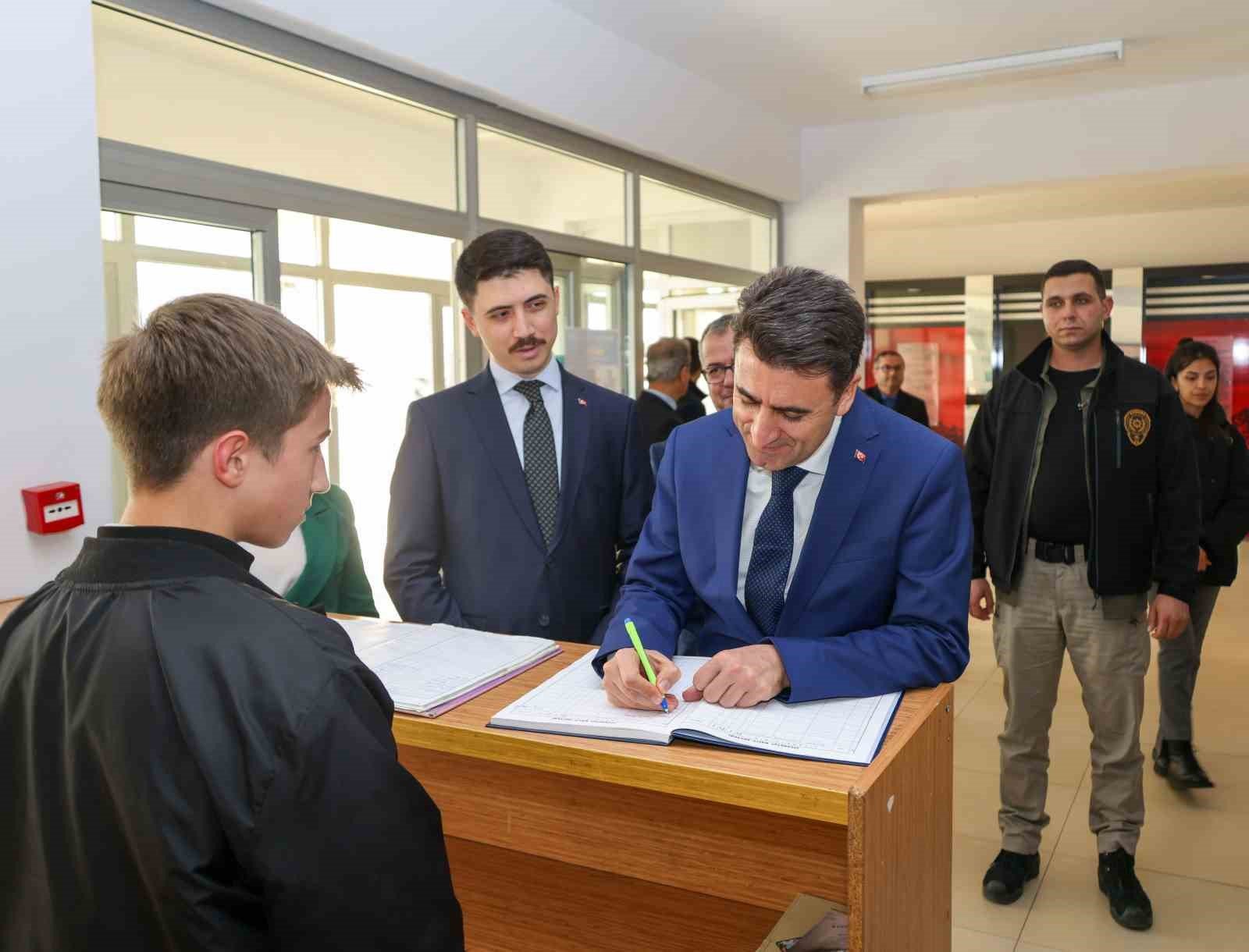 Vali Aygöl, hatıra fotoğrafı çektirerek okuldan ayrıldı. – İHA
