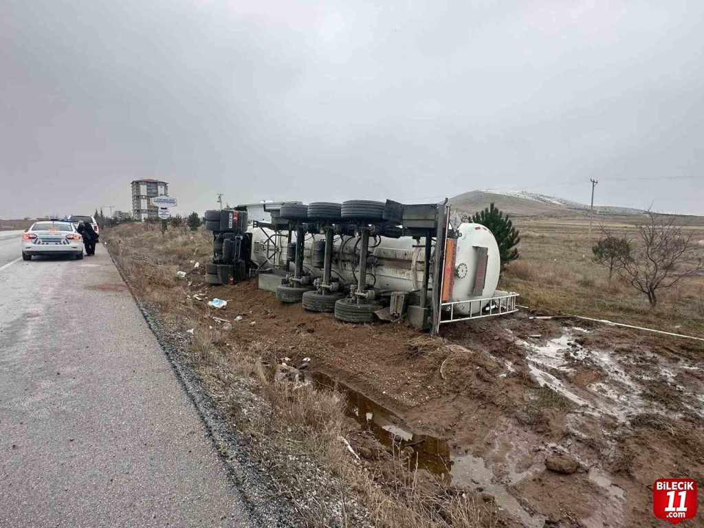Edinilen bilgilere göre, yaklaşık 28 yon kızartmalık bitkisel yağ taşıyan N.B., idaresindeki 14 ACB 454 plakalı tanker sürücüsünün henüz belirlenemeyen bir sebepten ötürü direksiyon hakimiyetini kaybetmesi sonucu kontrolden çıkarak yol kenarındaki devrildi.