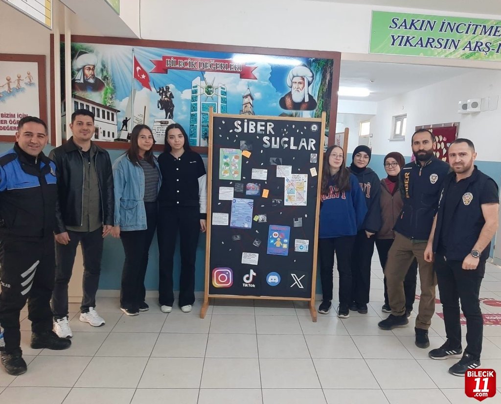 Öğrencilerin ‘Siber Suçlarla Mücadele’ için hazırladıkları panoyu inceleyen ekipler programın tamamlanmasının ardından okuldan ayrıldı.