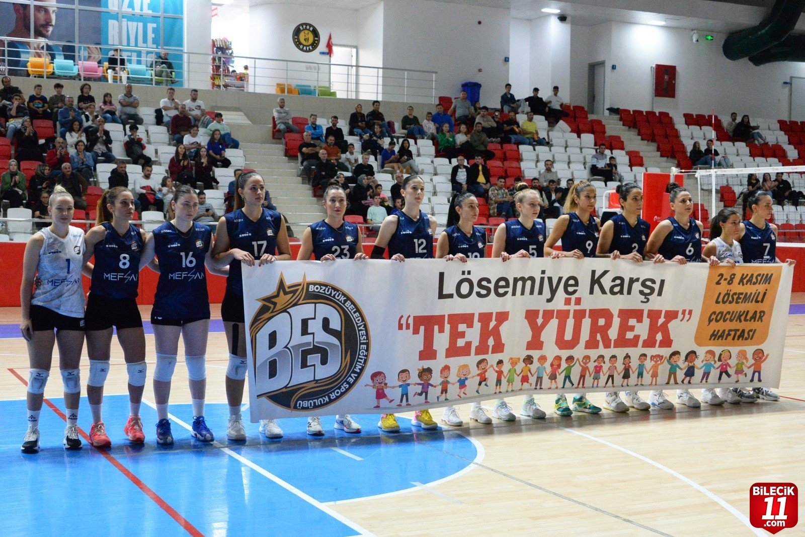 Bozüyük Yeni Kapalı Spor Salonu’nda oynanan karşılaşmayı İlçe Kaymakamı Adem Öztürk, protokol üyeleri, takıma sponsor olan fabrika yöneticileri, Bozüyük Belediyesi Eğitim ve Spor Kulübü teknik ekibi ve voleybol sever Bozüyüklüler ilgi ile izledi. Programı nedeniyle şehir dışında olan Bozüyük Belediye Başkanı Mehmet Talat Bakkalcıoğlu “Bizim Kızlar”ı görüntülü arayarak takıma başarılar diledi. Maç öncesinde voleybol severler için Cumhuriyet İlkokulu’nun önünden saat 13:00’ten itibaren Belediye otobüsleri ile ücretsiz ring seferleri düzenlendi. Bizim Kızlar” sahaya 2-8 Kasım Lösemili Çocuklar Haftası nedeniyle bu lösemiye dikkat çekerek farkındalık oluşturmak amacıyla üzerinde “Lösemiye Karşı Tek Yürek” yazan bir pankartla çıktı ve alkışlarla tribünlerden destek aldılar. Yoğun bir seyirci desteği ile oynanan maçı “Bizim Kızlar” 1. seti 25-16, 2. seti 25-9 ve 3. seti de 25-18’lik skorla 3-0 kazandı. Bozüyük Belediyesi cimnastik branşı sporcularının maçın set aralarında sundukları cimnastik gösterileri beğeni ile izlendi.