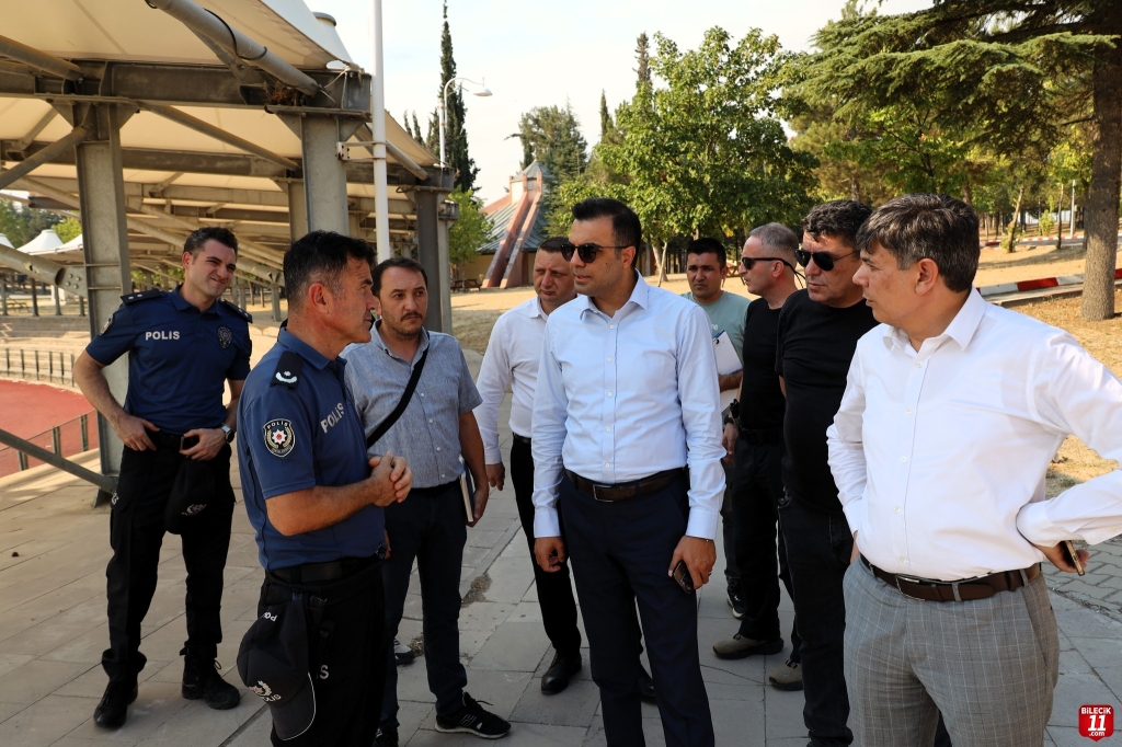 Kaymakam Murat Yayabaşı, Belediye Başkanı Ferhat Durgut tören alanında inlemelerde bulunarak ilgililerden bilgi aldı.