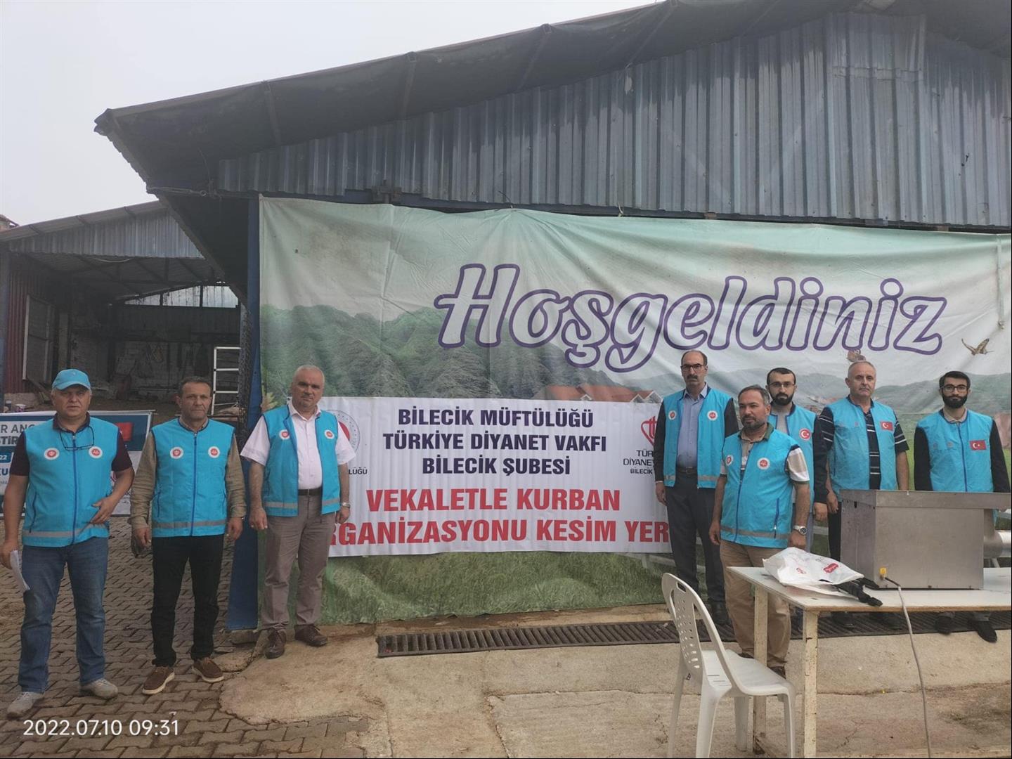 Müftülükten yapılan açıklamada, Bilecik Müftülüğü ve TDV Bilecik Şubesinin geçen sene olduğu gibi bu yıl da vekaletle kurban kesimi organizasyonu düzenlediği belirtildi.