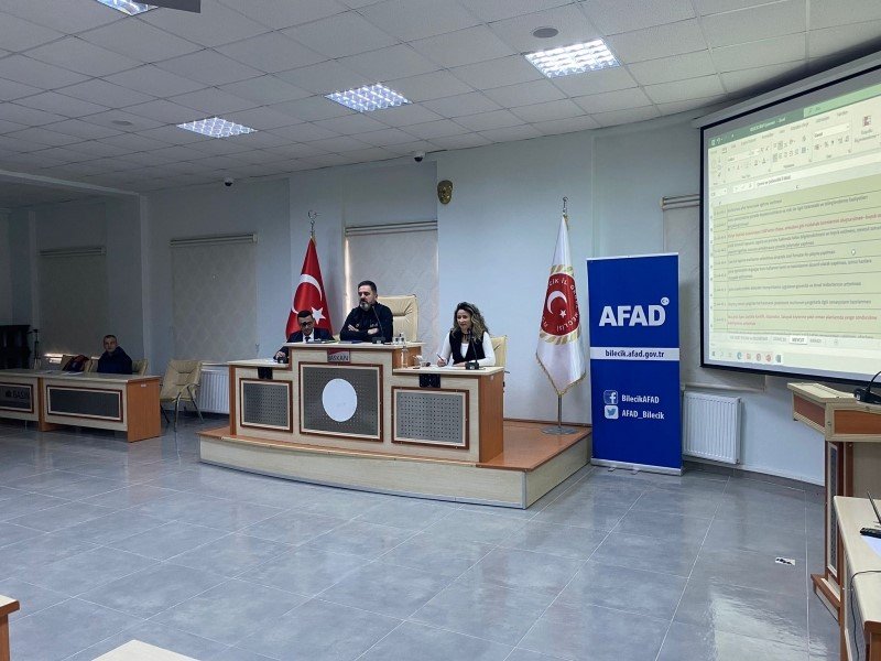 Bilecik İl Özel İdaresi Toplantı Salonunda yapılan toplantıya Bilecik İl Afet ve Acil Durum Müdürü Mehmet Hayri Demirel başkanlık etti.
