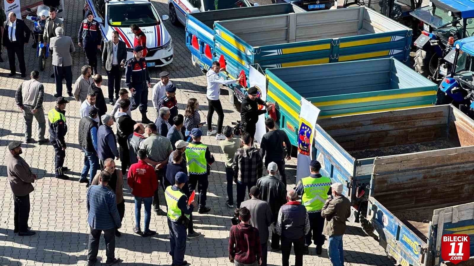 Afyonkarahisar’da jandarma tarafından başlatılan ve traktörlerin karıştığı trafik kazalarının önüne geçilmesi amacıyla yapılan ‘Reflektör Tak Görünür Ol’ projesi devam ediyor. Proje çerçevesinde Afyonkarahisar İl Jandarma Komutanlığı Trafik Şube Müdürlüğüne bağlı jandarma trafik timleri tarafından Çayırbağ beldesinde sürücülere yönelik bilgilendirme yapıldı. Gerçekleştirilen programda reflektörleri olmayan veya özelliğini yitirmiş durumda bulunan toplam 15 traktör römorkuna yeni reflektör takıldı. Proje ile traktörlerin karıştığı ölümlü ve yaralanmalı trafik kazalarına engel olmak, ölüm ve yaralanmaların en aza indirilmesi hedefleniyor. – İHA