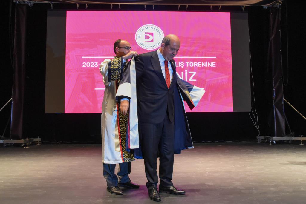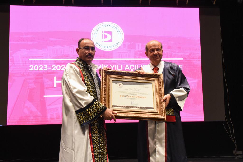 Üniversitenin 8 Kasım 2023 tarihli Senato Kurulu Toplantısında aldığı 411-3 Sayılı Karar ile KKTC Cumhurbaşkanı  Ersin Tatar’a Fahri Doktora Diploması tevdi edildi. Tatar’a; “KKTC’nin uluslararası ilişkiler alanındaki menfaatlerini korumakta gösterdiği gayretler ve Kıbrıs Türkünün onur ve haysiyetinin uluslararası toplum nezdinde muhafazasına verdiği müstesna katkılardan dolayı” kendisine tevdi edilen Fahri Doktora Diplomasını, Rektör Prof. Dr. Şükrü Beydemir arz etti.