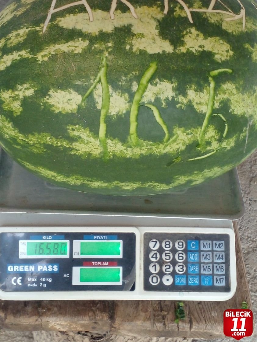 Karpuz’un üzerine de yetiştirildiği yeri belli etmek amacıyla ‘Akkaya’ yazan Kalkan, bölgede yetişen karpuzların ortalama 16-17 kilogram geldiğini söyledi.