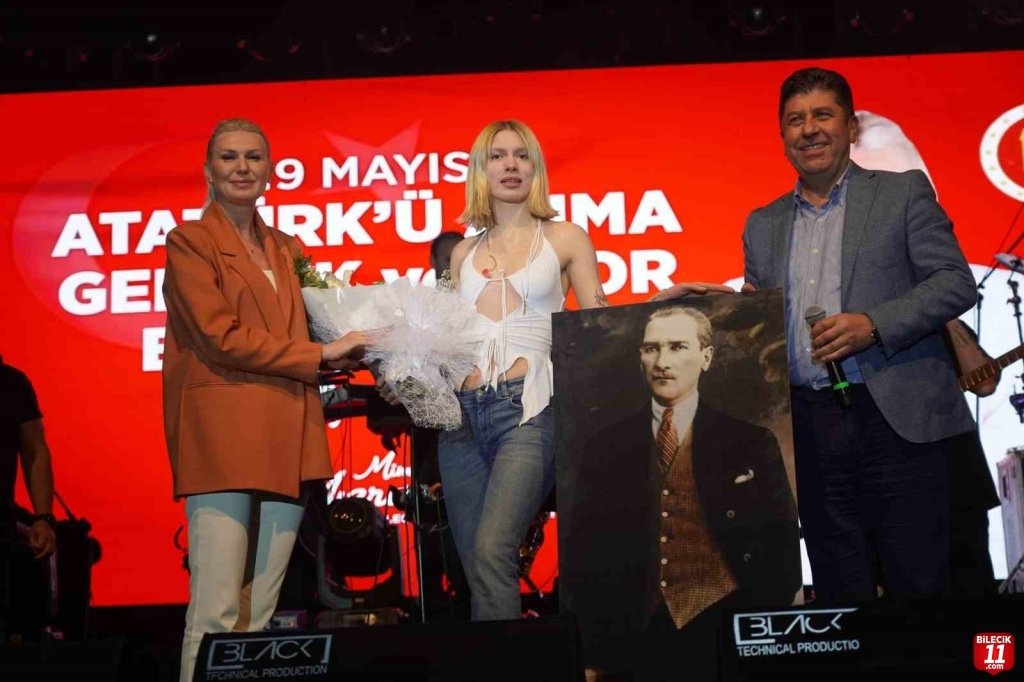 Konuşmaların sonunda Başkan Subaşı, Aleyna Tilki’ye çiçek hediye ederken, Milletvekili Yaşar Tüzün de Bilecik seramiğine yansıtılmış Atatürk portresini hediye etti.