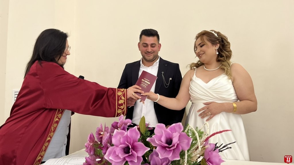 Bilecik Şeyh Edebali Kültür ve Kongre Merkezi’nde düzenlenen tören ile nikahları kıyılan Batuhan ile Berra’nın mutlulukları gözlerinden okundu.