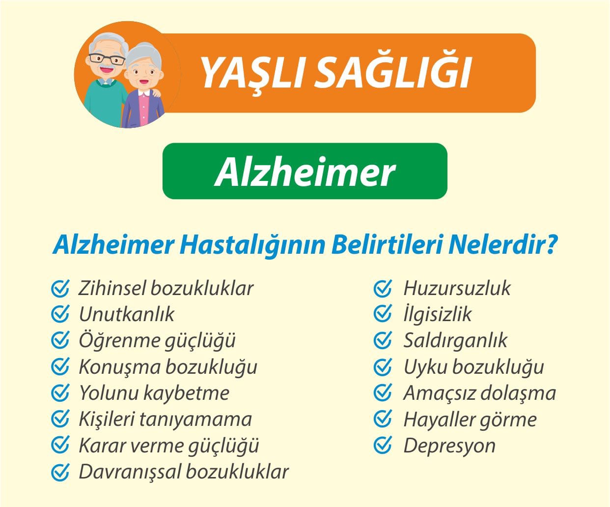 Düşünce, hafıza ve davranış fonksiyonlarında azalmaya neden olan bu hastalıkta belirtiler yaşla birlikte yavaş yavaş ortaya çıkar. Hastalığın ileri evrelere gelmesi yıllar sürebilir.