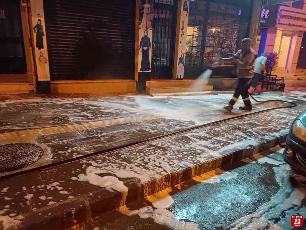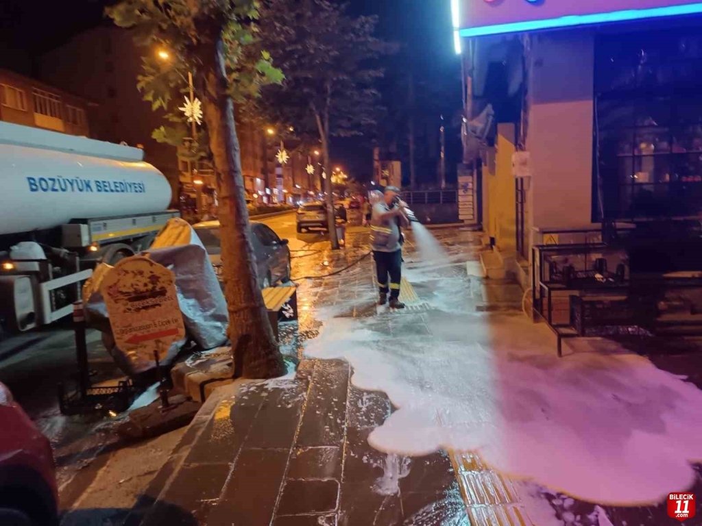 Bozüyük Belediyesi Temizlik İşleri Müdürlüğü ekipleri, araç ve yaya trafiğinin en aza indiği gece saatlerinde İsmet İnönü Caddesi üzerinde geniş çaplı bir temizlik çalışması gerçekleştirdi.