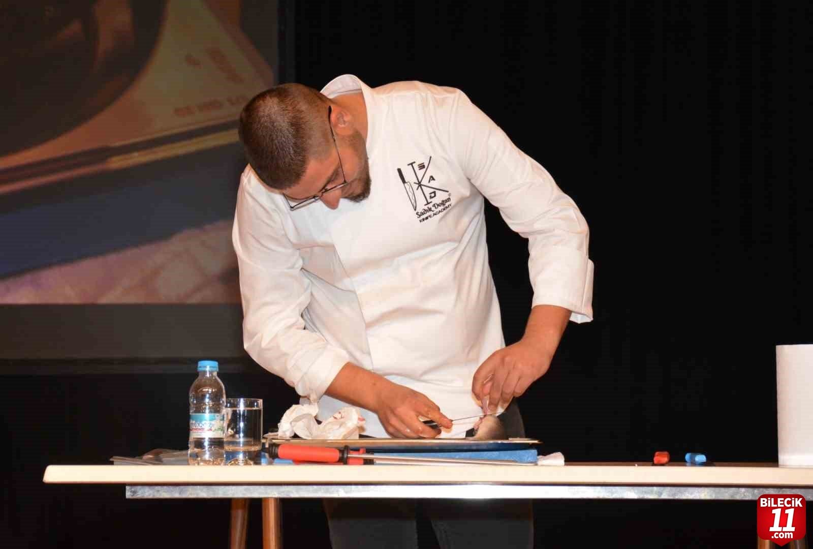 Atölye eğitiminde Şef Sadık Doğan, profesyonel mutfaklarda kullanılan bıçakları tanıtan ve dünya mutfaklarında kullanılan bıçak çeşitlerini verimli kullanma teknikleri üzerine bir sunum gerçekleştirdi. Sunumun ardından Şef Doğan, bıçakların doğru kullanımını uygulamalı olarak göstermek adına balık temizleme tekniklerini öğrencilere gösterdi.