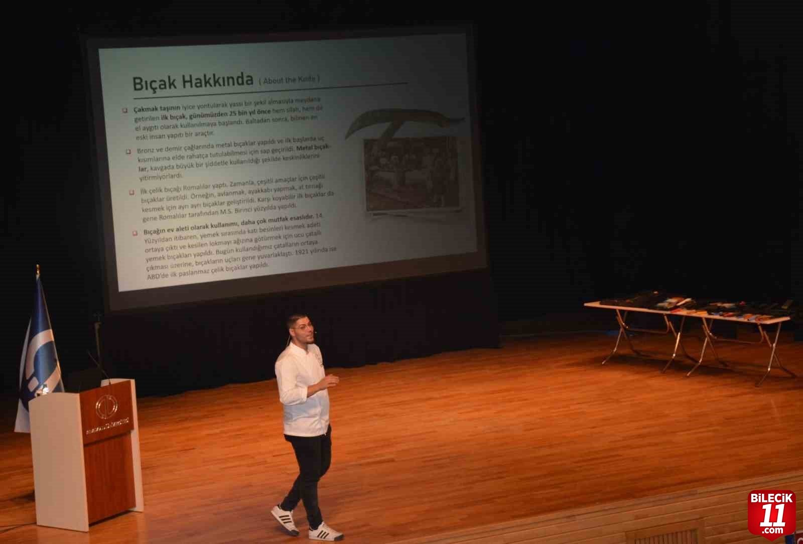 Knife Academy’den Şef Sadık Doğan’ın katılımıyla Öğrenci Merkezi Yunus Emre Salonu’nda düzenlenen etkinliğe Turizm Fakültesi Dekanı Prof. Dr. Semra Günay başta olmak üzere çok sayıda öğretim üyesi ve öğrenci katıldı.