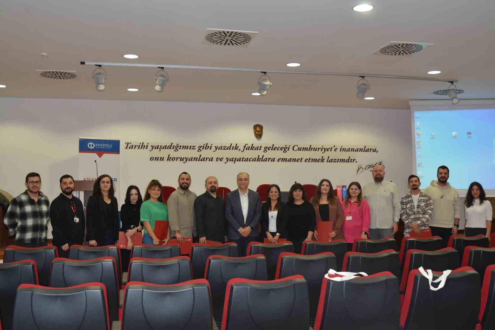 ’Erişim Kampüste’ etkinliğinin sonunda, ANAKARİYER Müdür Yardımcısı Dr. Öğr. Üyesi Nihan Vural ve ANAKARİYER Uzmanı Öğr. Gör. Dr. Hande Kaynar tarafından ekip üyelerine teşekkür belgeleri takdim edildi. – İHA