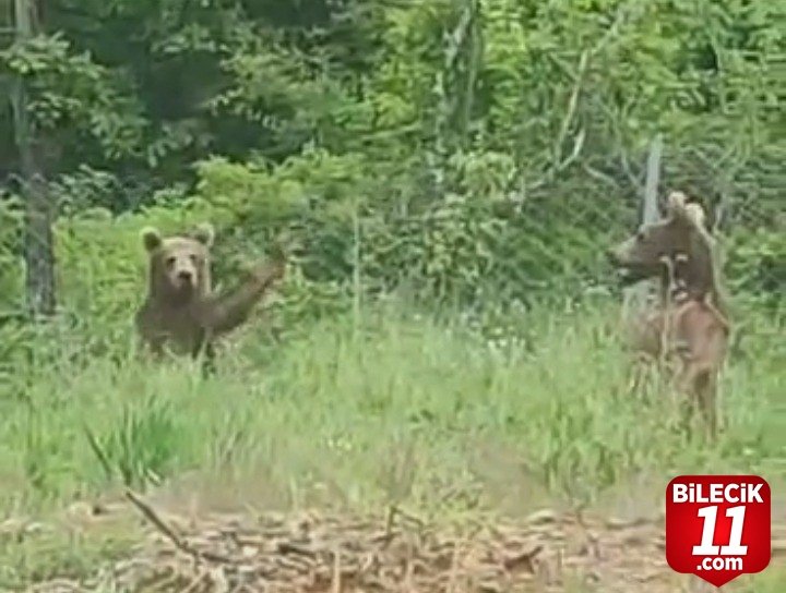 Arapdede köyü ile Sarıdayı köyü arasında kırsal bölgede tel ile çevrili bir tarlada yiyecek arayan ayılar, telefonuyla görüntüyü çeken vatandaşı fark etmeleriyle panikle kaçışmaya başladılar.