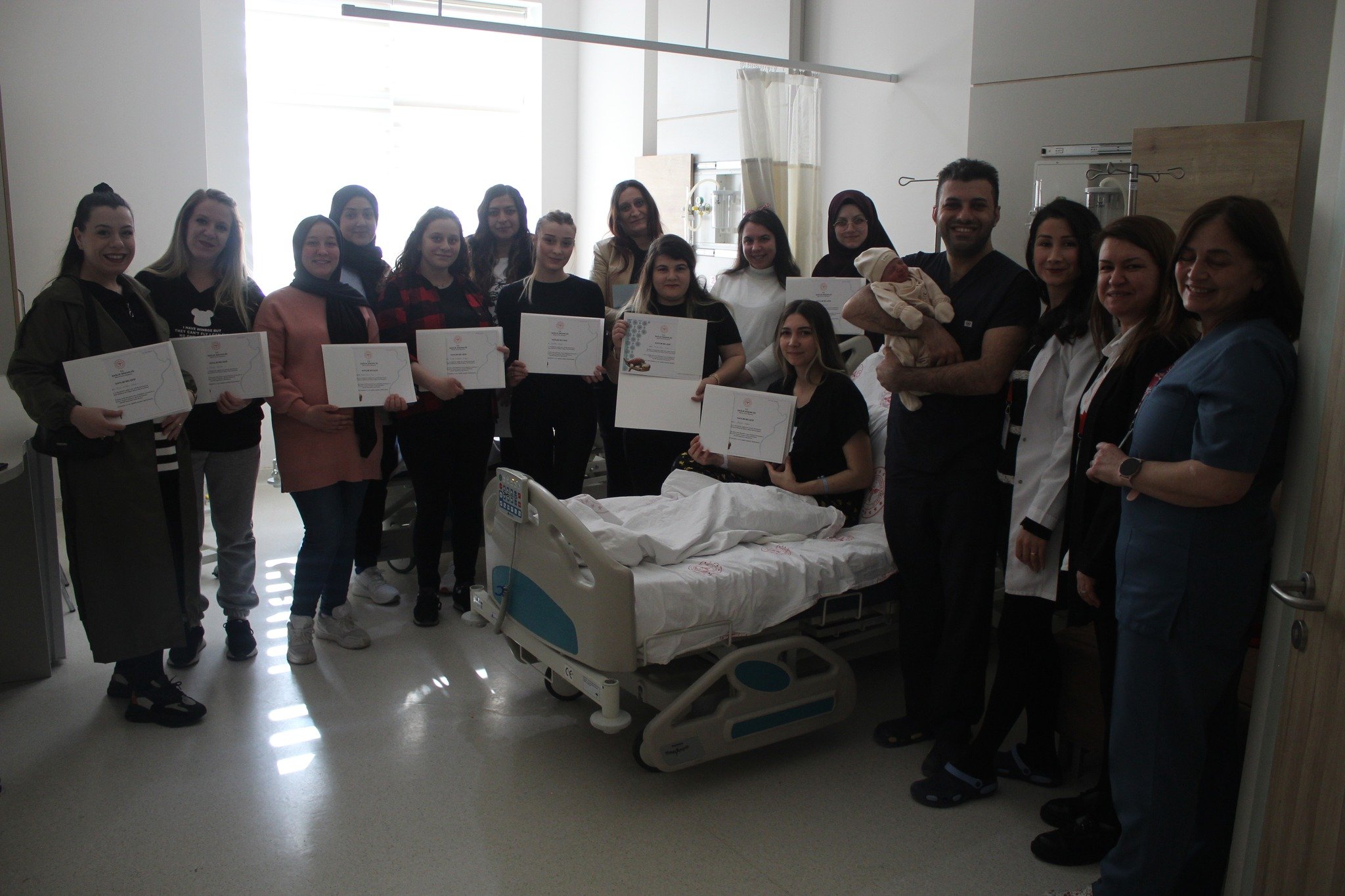 Hastaneden yapılan açıklamada, ”Hastanemiz gebe okulu 2023 yılının ilk mezunları ile sağlıklı anneler ve sağlıklı nesiller için keyifli ve faydalı bir eğitimi tamamlarken, Hastane Yönetimimiz ve eğitimcimiz Op.Dr Ahmet Demirci ile birlikte, eğitimin üçüncü günü normal doğum yapan annemizi gebelerimizle buluşturduk.” denildi.