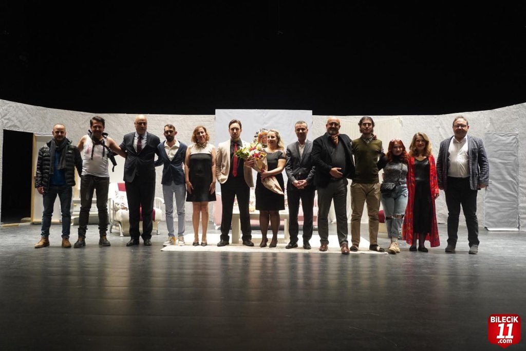 Oyunun sonunda seyirciler oyuncuları ayakta alkışlarken, Belediye Başkan yardımcısı Ahmet Gürses,oyunun yazarı ve Belediye Tiyatrosu Genel Yayın Yönetmeni Onur Algın’ı tebrik ederek çiçek takdim etti.