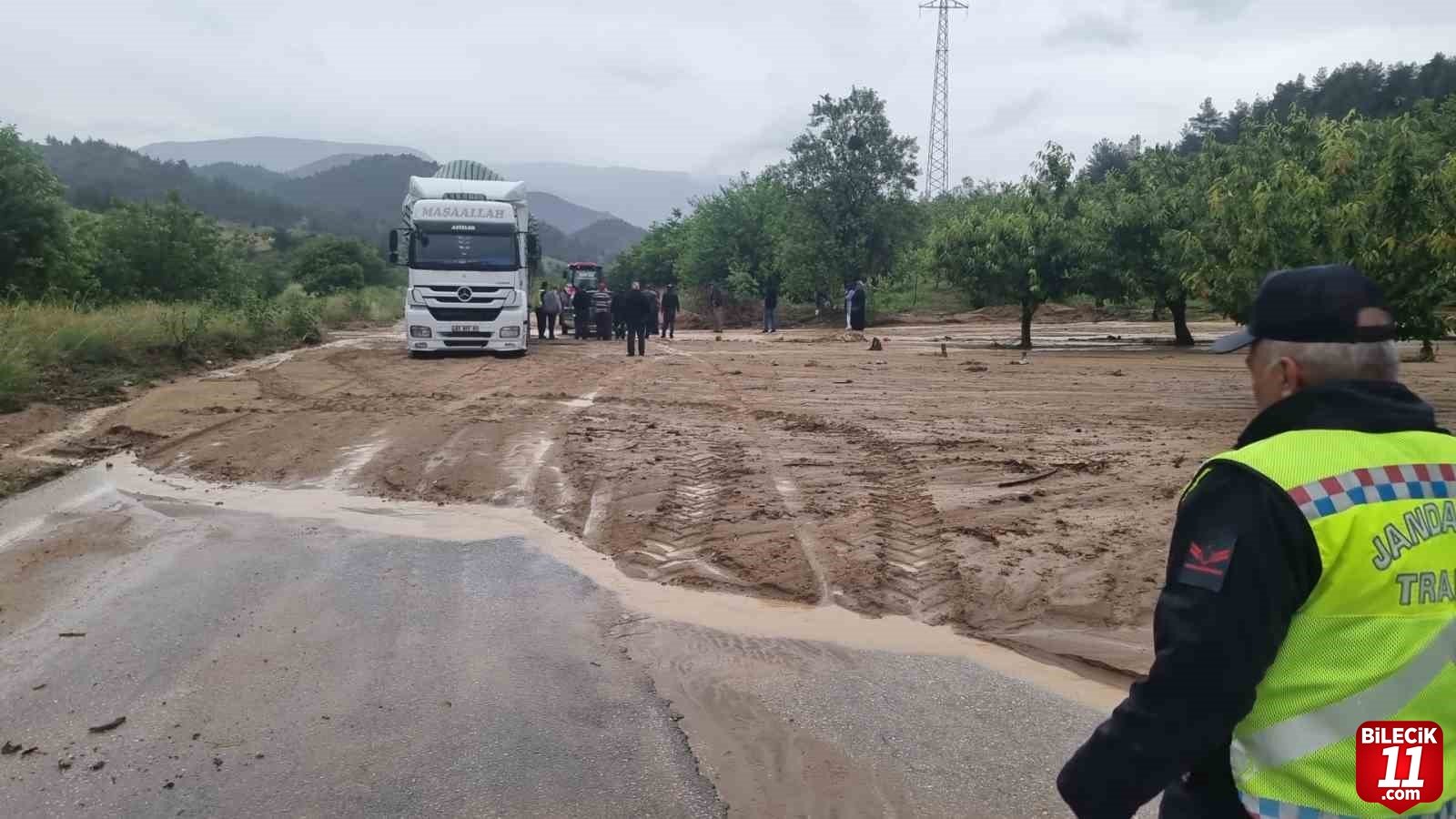 Bilecik’te sağanak nedeniyle bazı yollar ulaşıma kapandı, araçlar çamura saplandı.