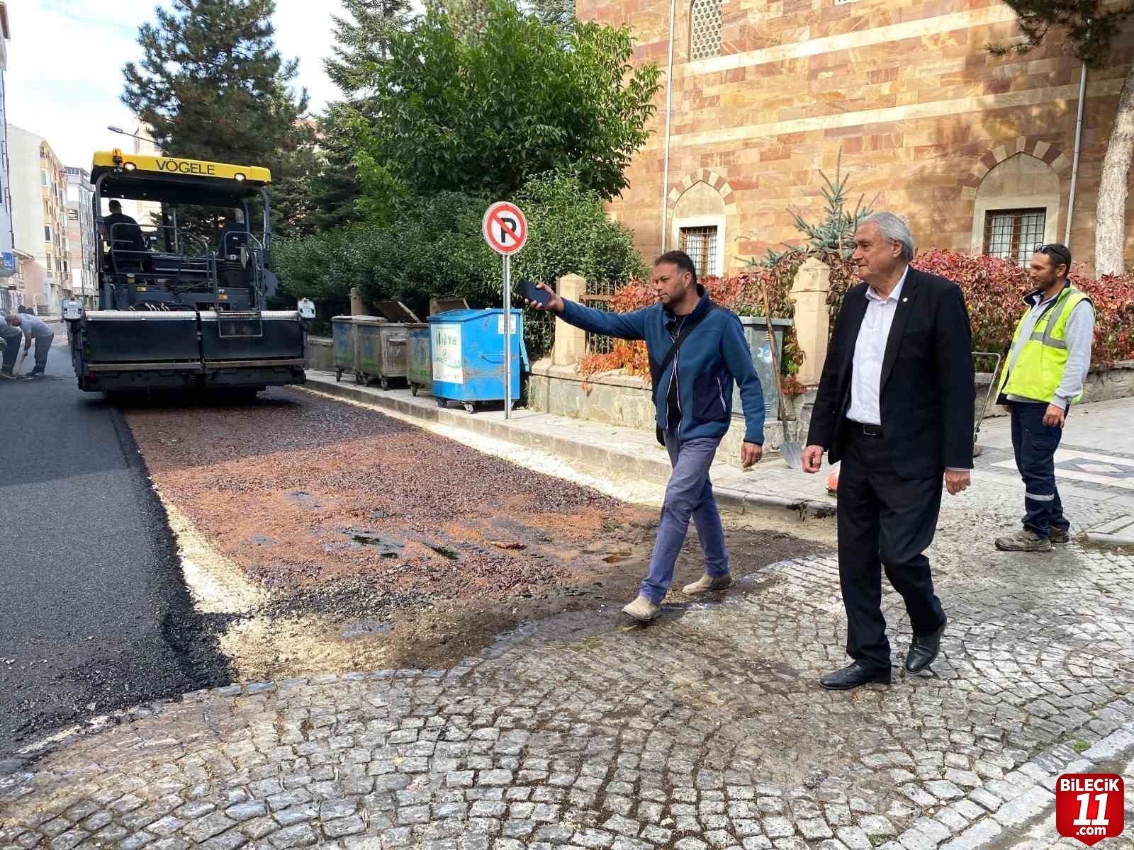 Bozüyük Belediye Başkanı Mehmet Talat Bakkalcıoğlu. Köteşliler Caddesi’nde yapılan asfaltlama çalışmalarına katılarak incelemelerde bulundu.