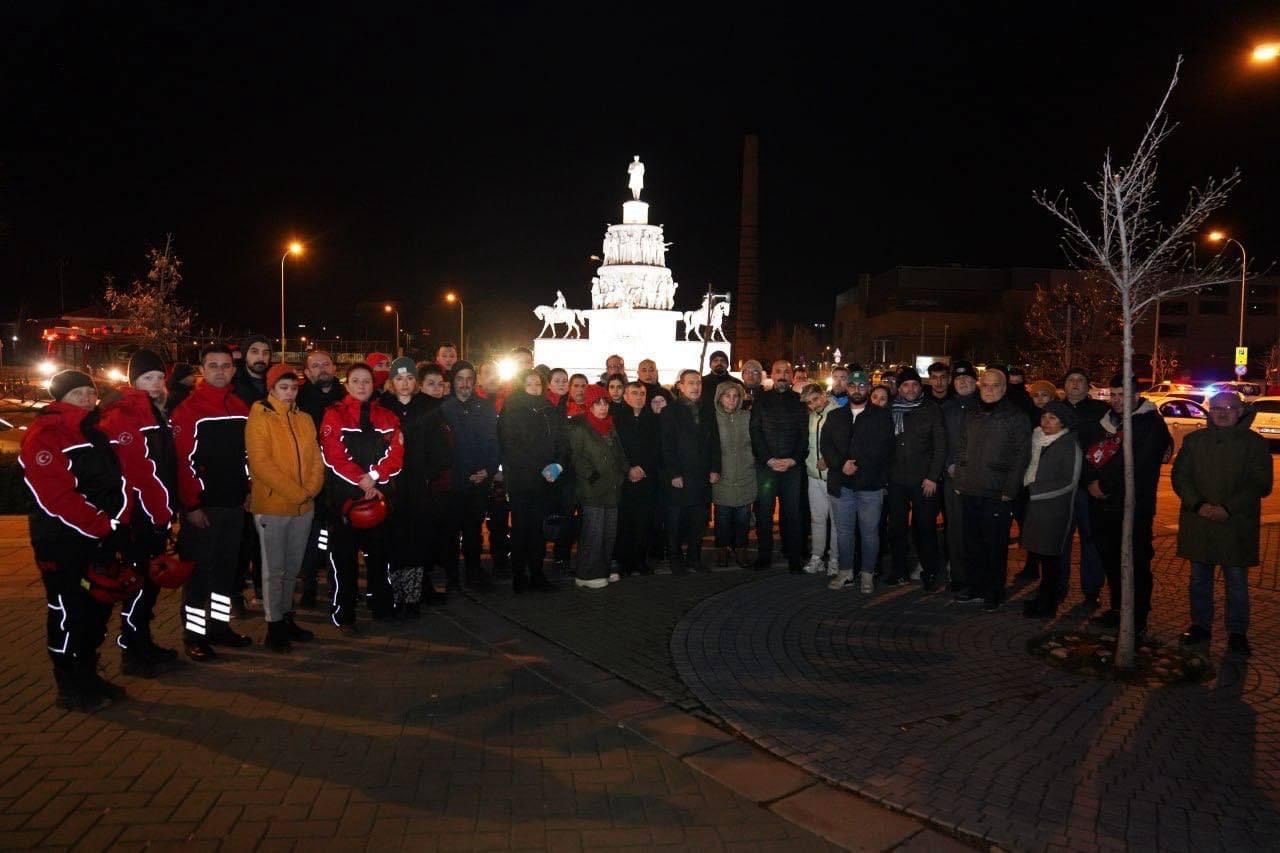 6 Şubat tarihinde Kahramanmaraş merkezli meydana gelen ve 50 binden fazla vatandaşın hayatını kaybetmesine neden olan depremlerin üzerinden tam 1 yıl geçti. Yıl dönümünde asrın felaketini unutmayan Eskişehirli vatandaşlar, yaşanan felaketi anmak için dün gece Ulus Anıtı’nın önünde bir araya geldi. Tepebaşı Belediye Başkanı Dt. Ahmet Ataç’ın da katılım gösterdiği etkinlikte, depremde hayatını kaybeden on binlerce vatandaş için dualar okundu. – İHA