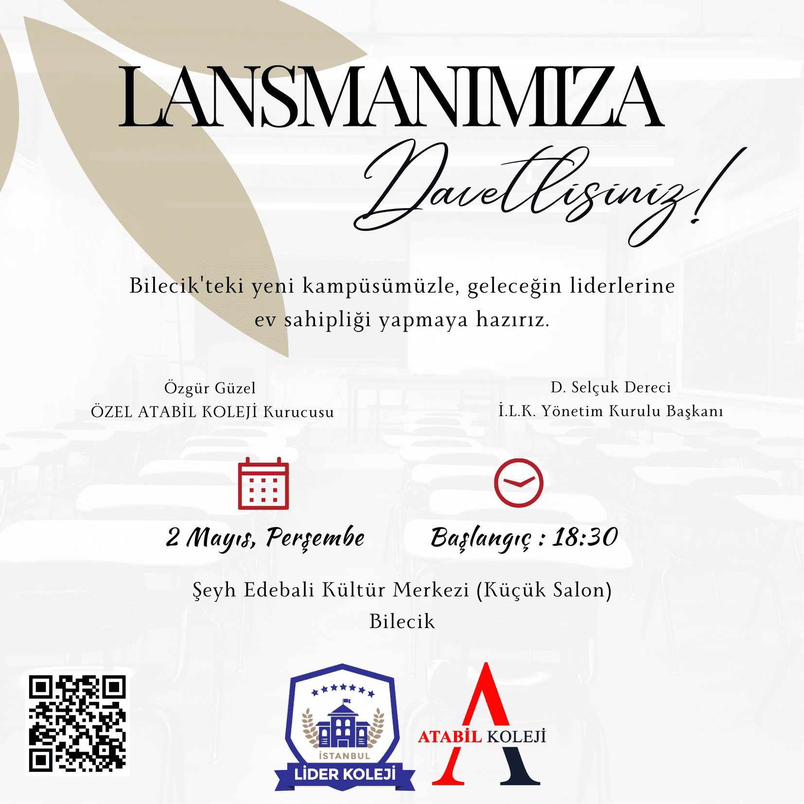 Bölgenin lider okulu olmayı misyon edindiklerini anlatan Özgür Güzel, “Bilecik Atabil Koleji olarak Başöğretmen Mustafa Kemal Atatürk’ün izinde, hayatın her alanında başarılı olacak bireyler yetiştirmek için büyük gayretlerle çalışmaktayız. Ülkemizin yetiştirdiği mümtaz eğitimcilerin kurduğu İstanbul Lider Koleji ile eğitim iş birliği akreditasyonu anlaşması sağladık.” ifadelerini kullandı.