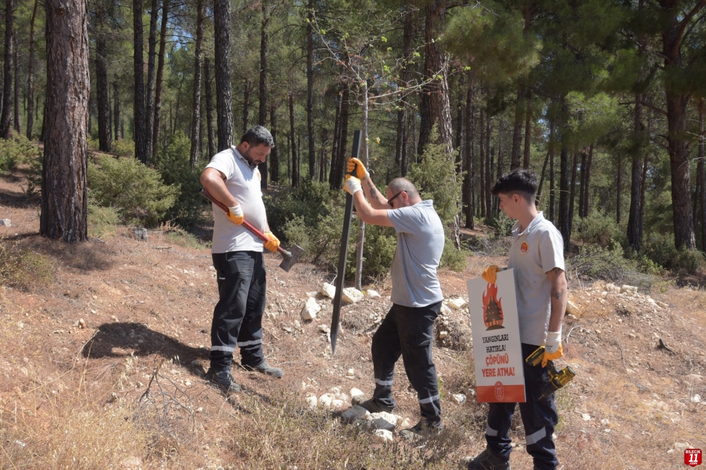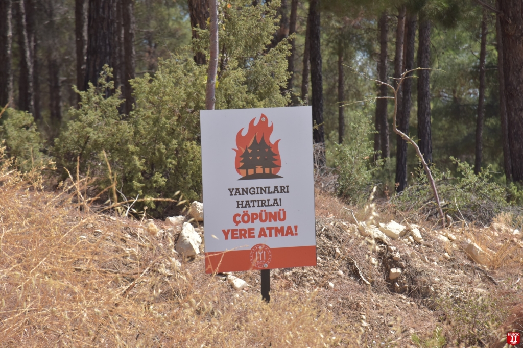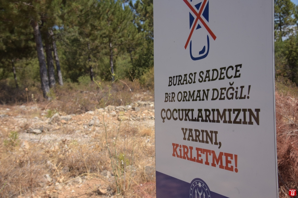 “Geleceğe Saygın Varsa Kirletme”, “Burası Sadece Bir Orman Değil, Çocuklarımızın Yarını”, “Yangınları Hatırla Çöpünü Yere Atma” ve “Her Çöp Bir Kıvılcım Olabilir” ifadelerinin bulunduğu levhalar, vatandaşlara doğayı koruma çağrısı yaptı.
