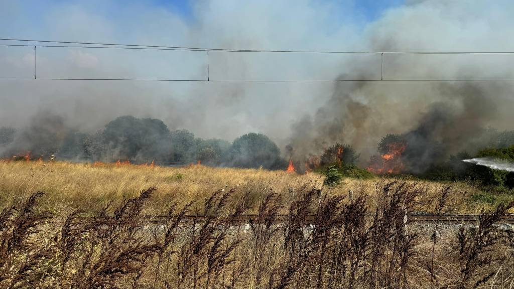Tahtakale Mahallesi O3 Güney Yan Yol'daki otluk ve ağaçlık alanda henüz belirlenemeyen nedenle yangın çıktı.