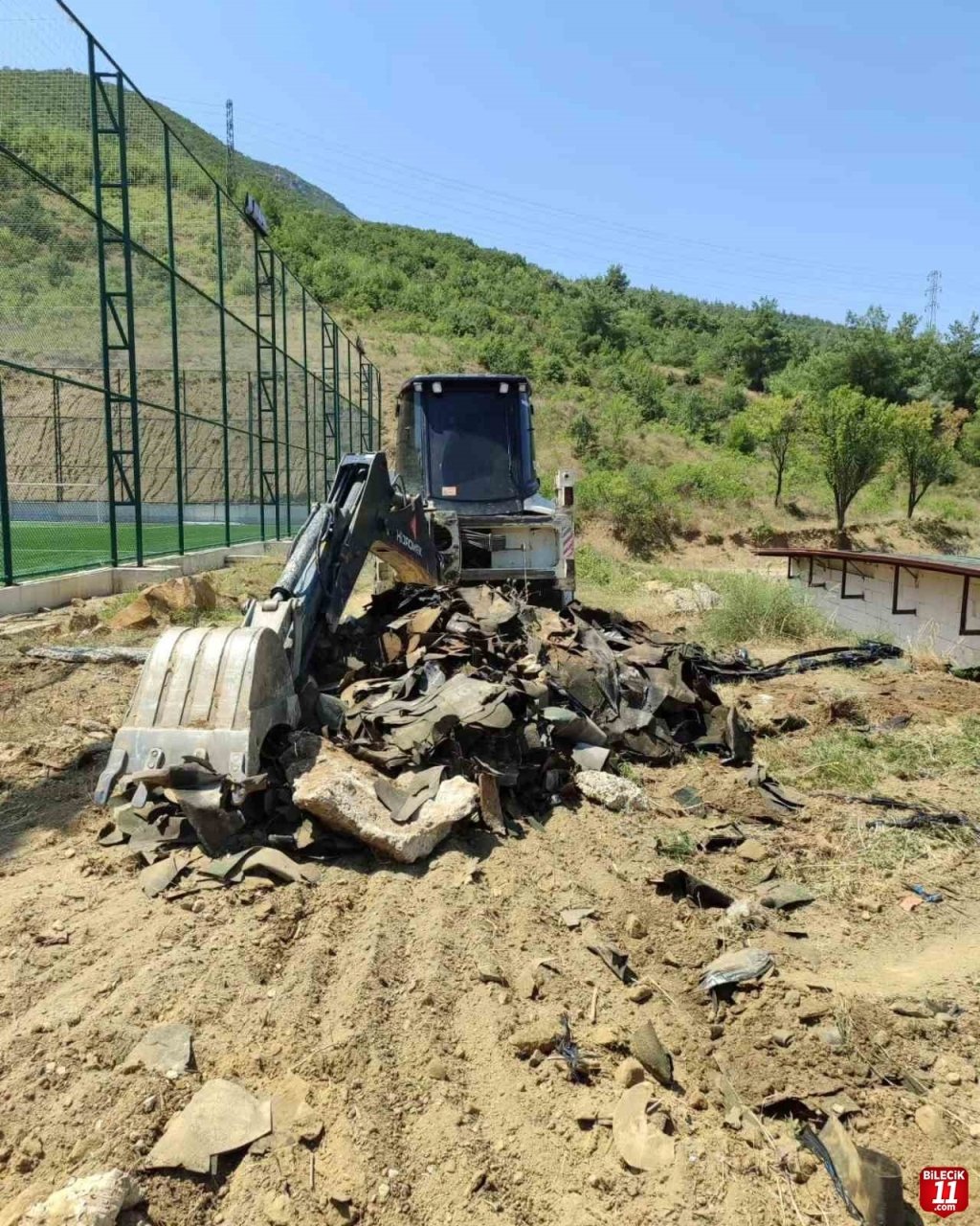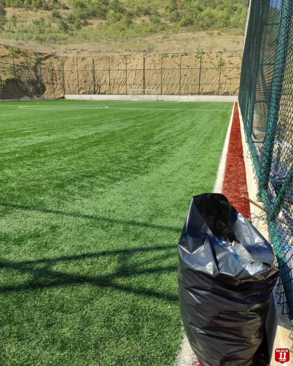 Bilecik’in Bayırköy beldesinde bulunan halı saha içerisine bırakılan çöpler belediye ekipleri tarafından temizlendi.