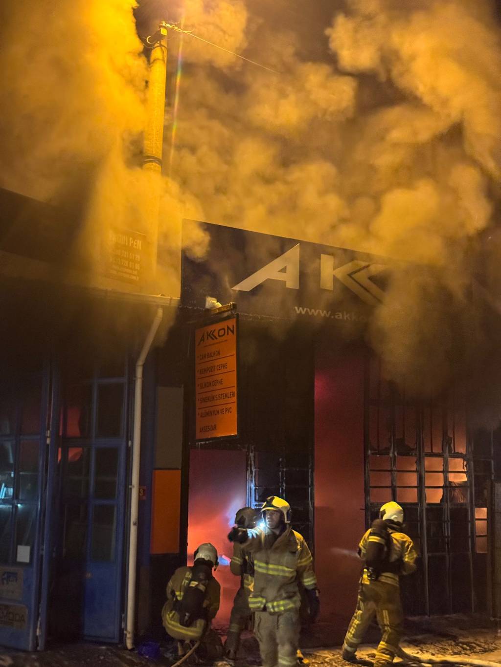 150 Evler Mahallesi'ndeki Sanayi Sitesi 3. Sokak'ta Fahri Ergin ve Ercan İncedayı'ya ait PVC kapı ve pencere sistemleri üretilen atölyede sabaha karşı henüz belirlenemeyen nedenle yangın çıktı.