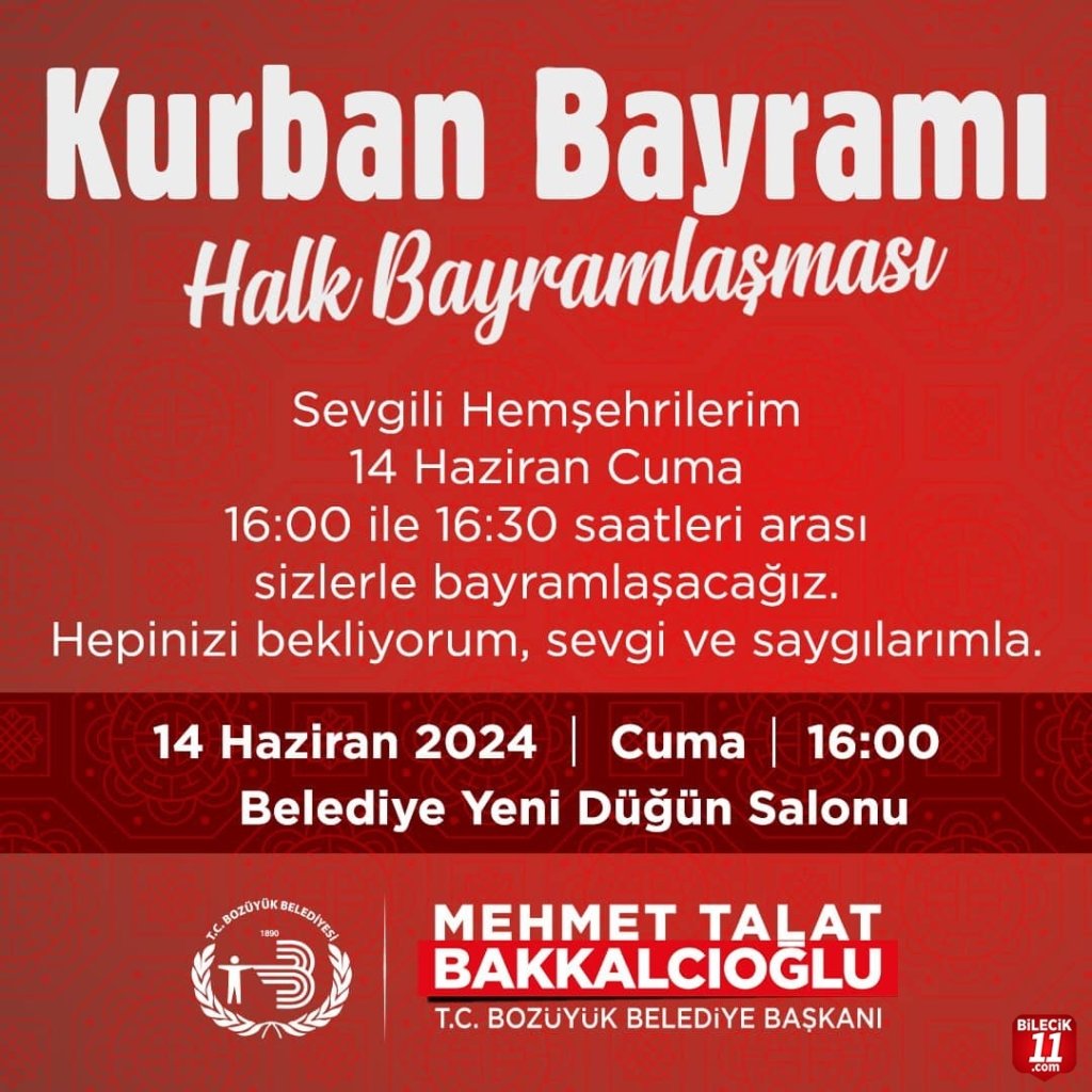 Bozüyük Belediye Başkanı M.Talat Bakklcıoğlu Kurban Bayramı öncesi herkesi bayramlaşmaya davet etti.