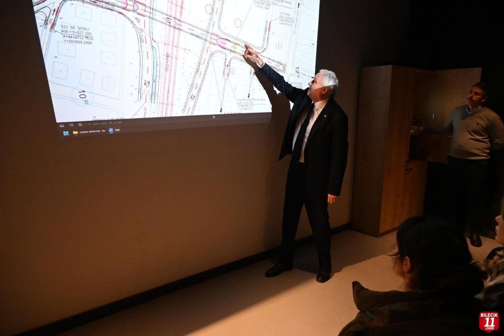Ardından Anı Evi toplantı salonunda yaklaşık bir yılı dolduran hizmet değerlendirmesi yapan Bakkalcıoğlu burada slayt eşliğinde yaptığı sunumda ilk olarak eski Kaymakamlık Lojmanı yanındaki Seramik Caddesini Tren yolunun karşısına bağlayacak olan Üst Geçit Projesine değindi. Projenin tamamlandığını ifade eden Bakkalcıoğlu, daha önce bu işi yapan firmalar arasından ihalesinin yapılacağını belirtti.