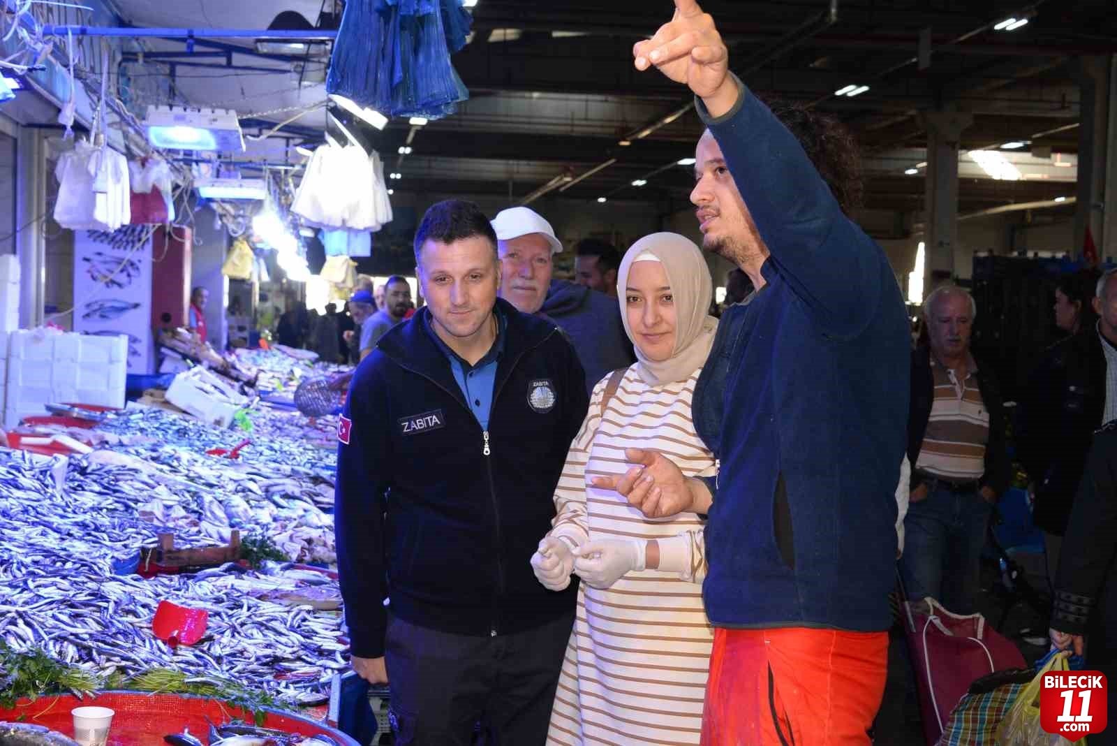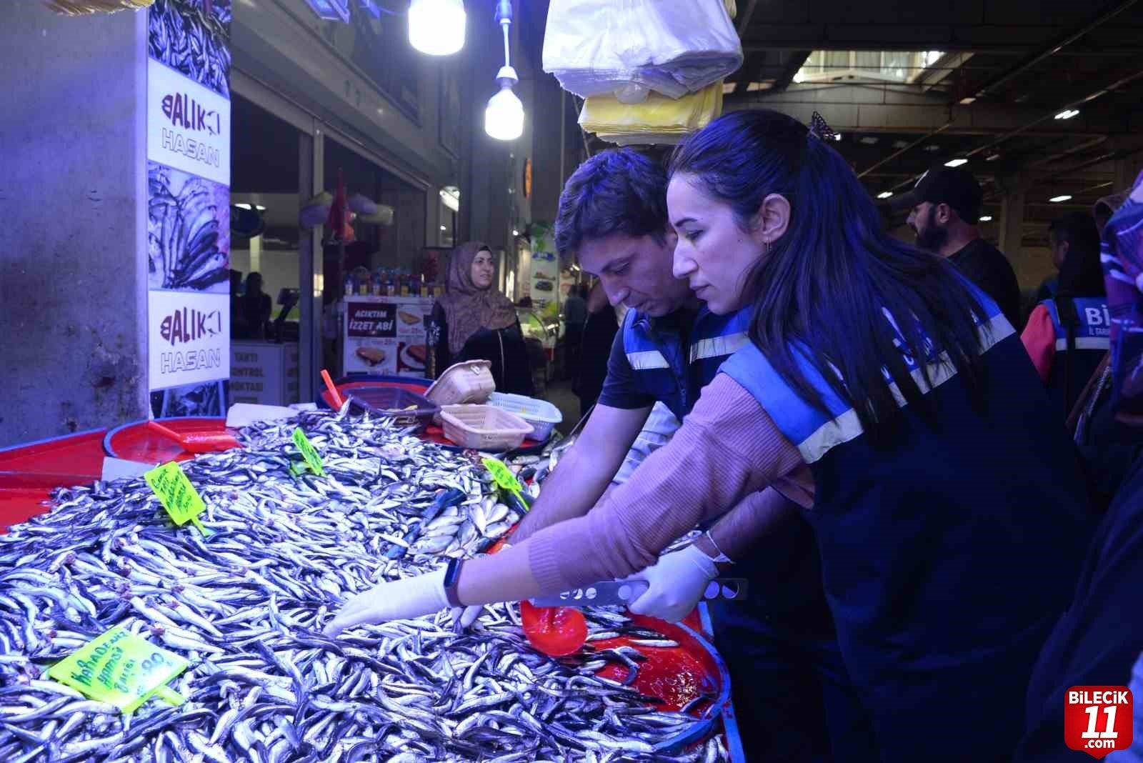 Bozüyük Belediyesi kapalı pazaryerinde balık satışı yapan esnaflar denetlendi.