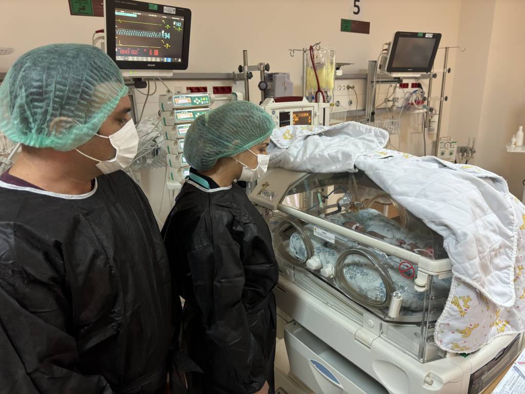 "Bu tip vakalarda en iyi sonuçları hastanın kendi yatağında, kendi hastanesinde opere edilmesiyle alıyoruz. Bulunduğumuz hastanede yattığı yoğun bakım, ameliyathane şartlarına dönüştürüldü. Burada bu şartlar müsait olduğu için buraya geldim ve ameliyatını da gerçekleştirdik. Kalple akciğer arasında bir damar var. Bu damarın normalde kapanması gerekiyor. Anne karnındayken bu damar genelde açıktır. Onunla çocuk yaşar ama erken doğduğu için bir şekilde hala anne karnındaki hayat devam ediyor şeklinde olmuş. Kalpte basit bir şekilde göğüs boşluğundan girerek bu damarı bir metal kliple kapatıyoruz. Solunum cihazına bağlıydı uzun süredir. İnşallah 3-5 gün sonrada solunum cihazından ayrılabilecek."