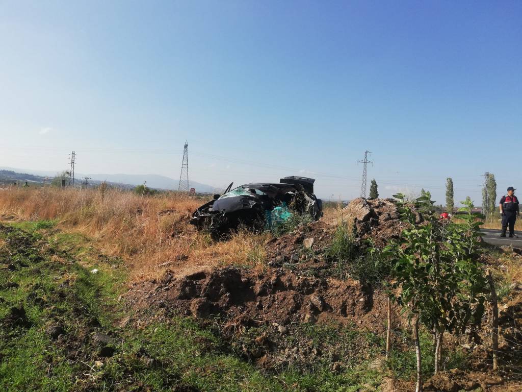 Otomobil, çarpışmanın etkisiyle yoldan çıkarak tarlaya savruldu.