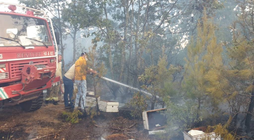 Yangında, bölgede bulunan bazı arı kovanları da hasar gördü.