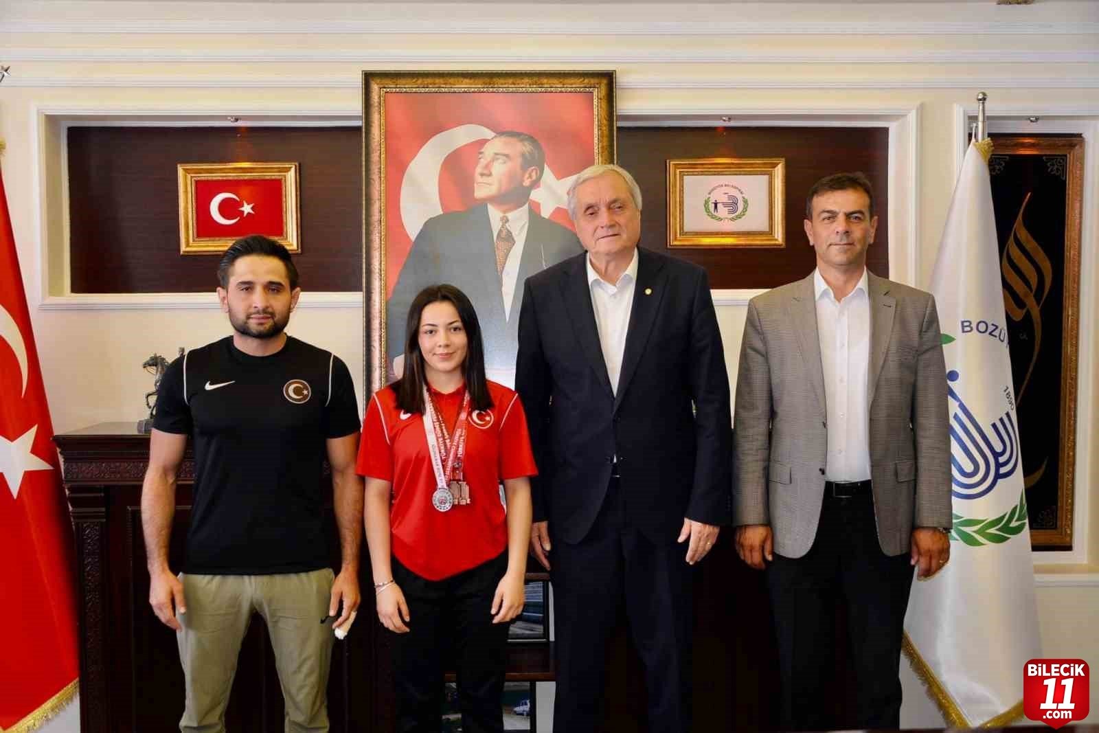 Bilecik’in güreş branşındaki gururu Bozüyük Belediyesi Eğitim ve Spor Kulübü ve Milli Takım Sporcusu Başak Duman, Bozüyük Belediye Başkanı Mehmet Talat Bakkalcıoğlu ile bir araya geldi.