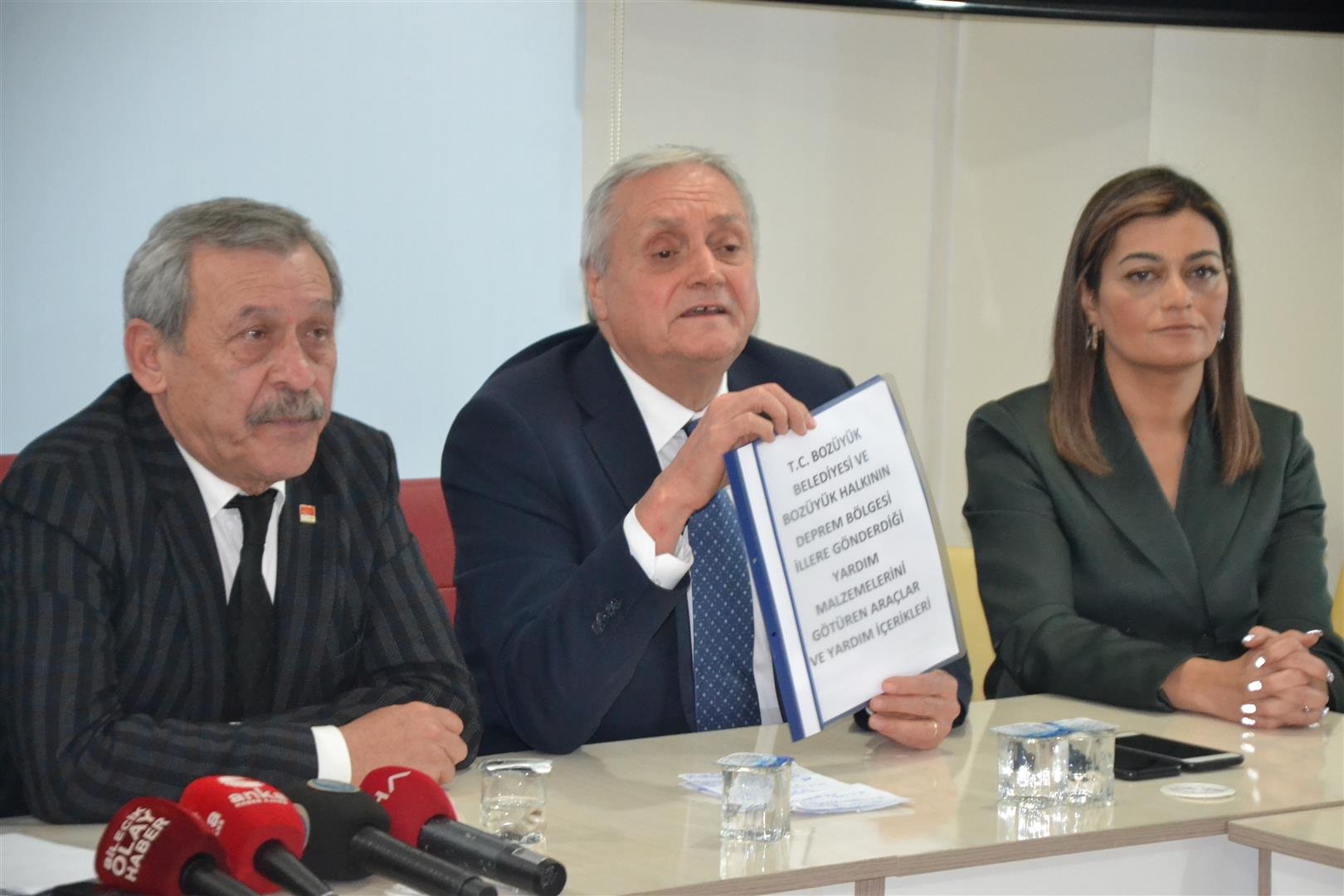 7 Şubat günü 2 tane tır hazırladık. Yüksek dorseli, kapalı kasalı bu tırlarımız Kahramanmaraş Pazarcık ve Narlı ilçelerine gittiler. Orada ürünleri teslim ettiler. Biz bu yardım malzemelerini Sayın Vekilimizle irtibata geçerek Genel Merkezimizin koordinasyonunda yapmaya çalıştık. Bozüyük halkı, Bozüyük Belediyesine güvenerek o ürünleri getirdiler. Başka yardım toplama yerlerinin Belediyemizinki kadar olmadığını gördük. Kahramanmaraş, Pazarcık ve Narlı ilçelerine giden araçlarımız güvenli ellerde.