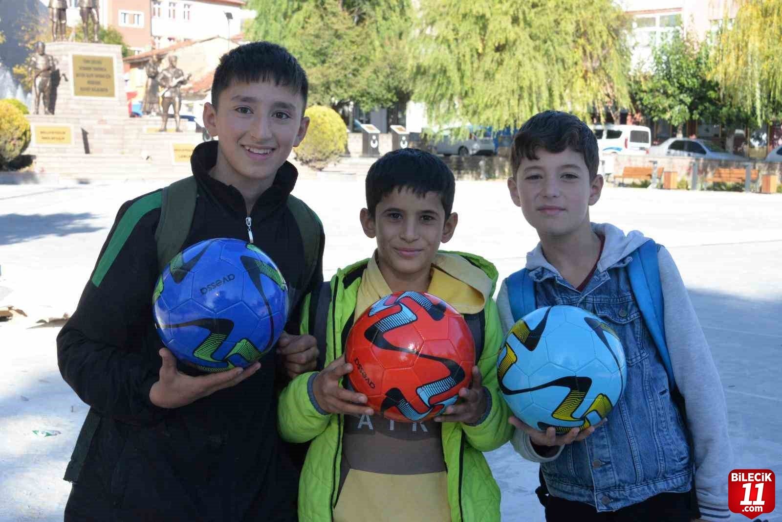 Bozüyük Belediye Başkanı Mehmet Talat Bakkalcıoğlu, Cumhuriyet Meydanı’nda bir araya geldiği çocuklara top hediye ederek onları sevindirdi.