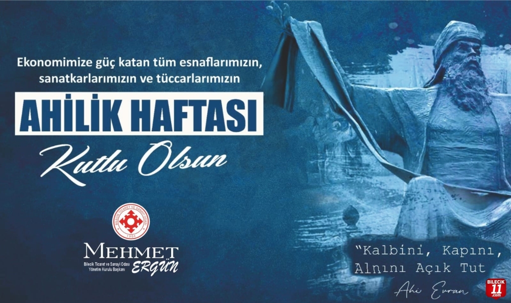 Bilecik Ticaret ve Sanayi Odası Başkanı Mehmet Ergün, ”Ahilik Haftası” dolayısıyla mesaj yayımladı.