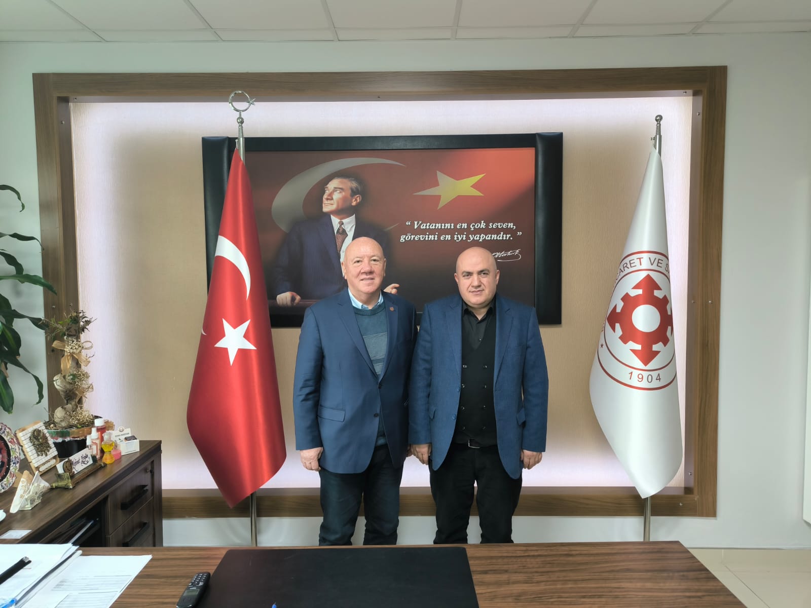 Türkiye Gazeteciler Konfederasyonu Genel Başkanı ve Bursa Gazeteciler Cemiyeti Başkanı Nuri Kolaylı da Bilecik Ticaret ve Sanayi Odası Yönetim Kurulu Başkanı ve aynı zamanda Basın İlan Kurumu Yönetim Kurulu Üyesi Mehmet Ergün’e makamında ziyarette bulundu. Sohbet ve karşılıklı fikir alışverişi şeklinde gerçekleşen ziyaretten duyduğu memnuniyeti dile getiren Başkan Ergün, ziyaretleri için Kolaylı’ya teşekkür etti.