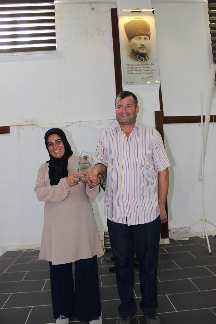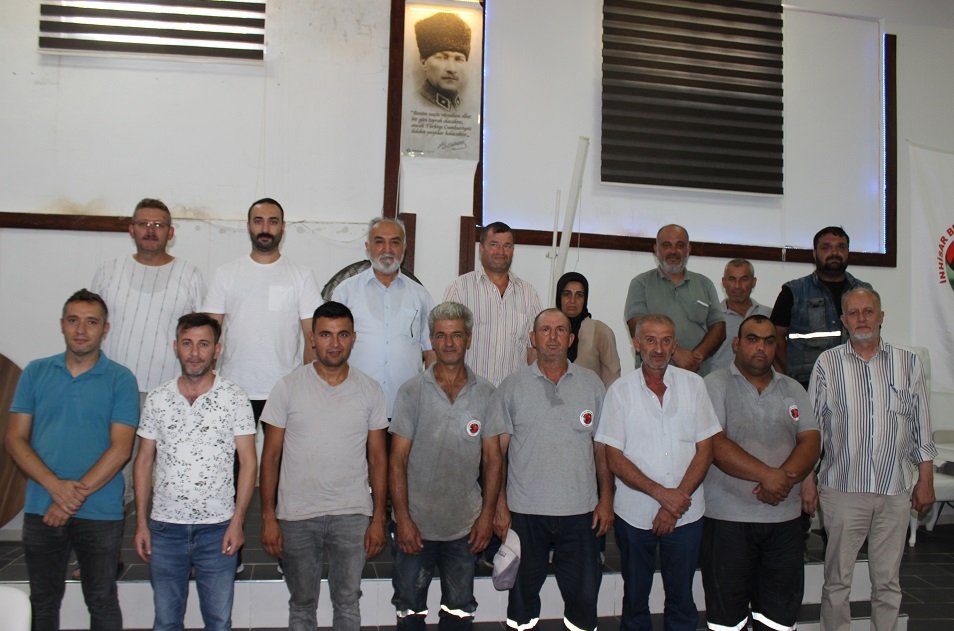 İnhisar Belediye Başkanı Mehmet Kepez, emekli olan belediye personeline teşekkür plaketi verdi.