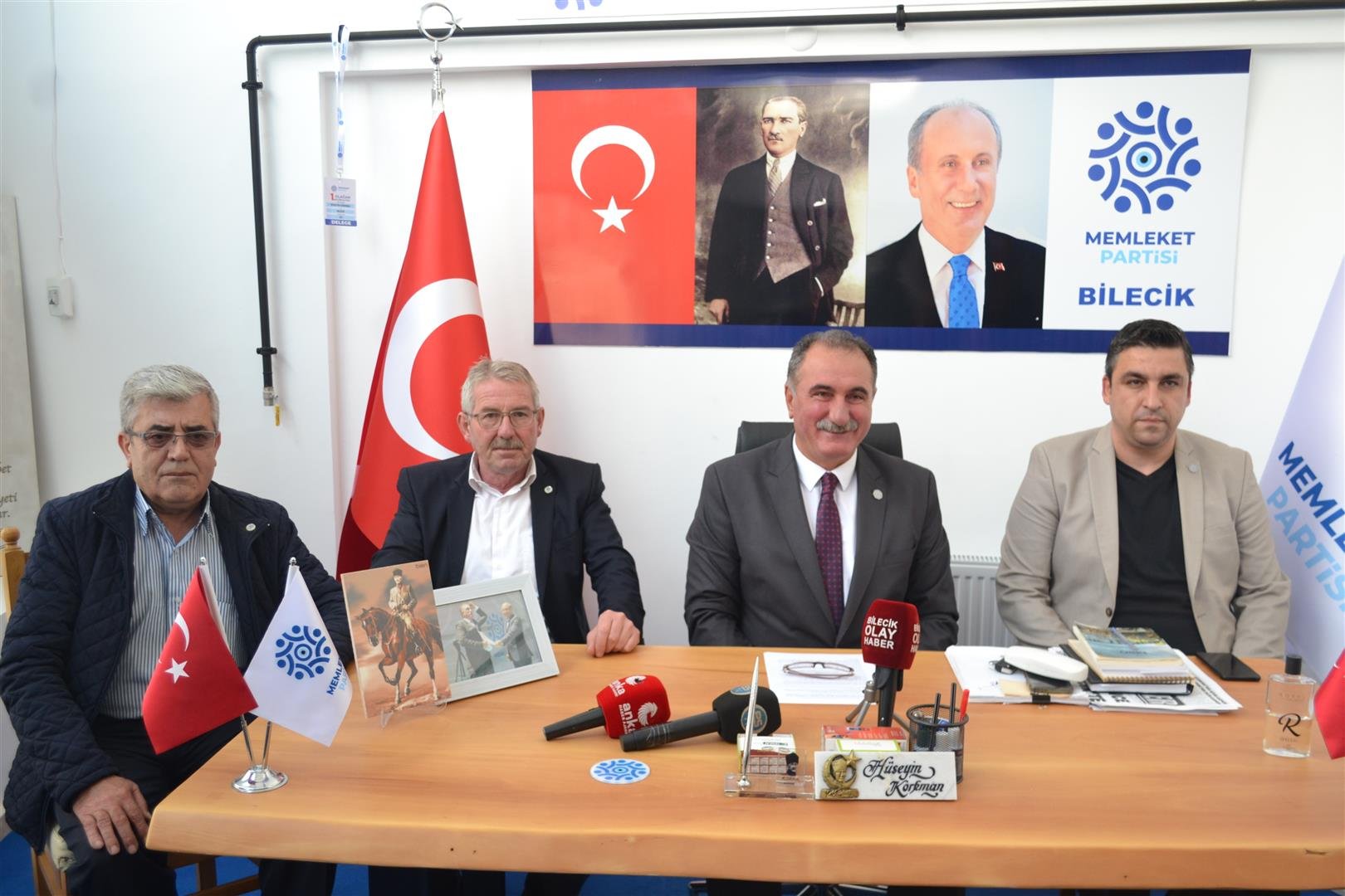 Memleket Partisi Bilecik İl Başkanlığı binasında gerçekleştirilen basın açıklamasına, Bozüyük ilçe başkanı şükrü Çetiner, Söğüt İlçe Başkanı Adnan Kayalı, Merkez İlçe Başkanı Okan Vural ve partililer katıldı.