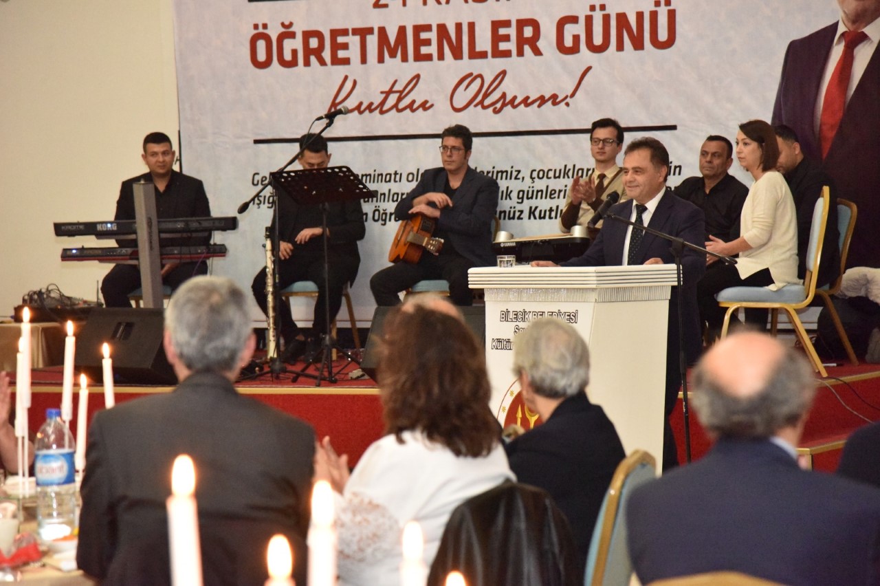 Programda konuşan Başkan Şahin, programda öğretmenlerle olmaktan duyduğu mutluluğu dile getirdi. Şahin, “Öncelikle Başöğretmen Mustafa Kemal Atatürk ve ebediyete intikal eden bütün öğretmenlerimizi rahmet ve şükran ile anıyorum. Hayatta ve görevi başında olan bütün öğretmenlerimize sağlıklı ve mutlu bir yaşam diliyorum. Bu anlamlı gün dolayısıyla sizlerle bir arada olduğumuz için çok mutluyum. Aslında ben de bir öğretmenin ve eğitimciyim. Öğretmenlik, belediye başkanlığında da, milletvekilliği ve bakanlıktan da başbakanlık ve cumhurbaşkanlığından da çok daha değerli bir meslektir. Çünkü sizler yarınlarımızın teminatı olan çocuklarımızı yetiştiriyorsunuz. Sizinle birlikte kutladığımız bu tür günler bizim için çok önemli ve güç aldığımız günlerdir. Emekli öğretmenler bana göre şehrimiz için en önemli kişilerdir. Başöğretmen Atatürk de ‘Milletleri kurtaracak olanlar yalnız ve ancak öğretmenlerdir’ diyerek öğretmenlerin toplumdaki yeri ve önemine değinmiştir’’ şeklinde konuştu.