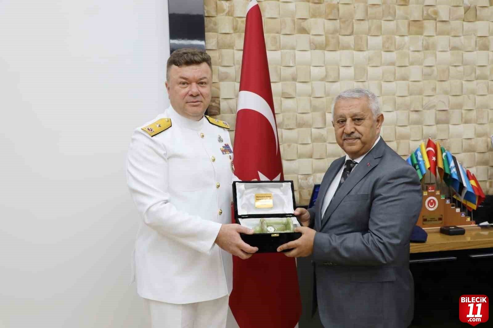 26-30 Ağustos Büyük Taarruz ve Afyonkarahisar’ın düşman işgalinden kurtuluşunun yıldönümü kutlama etkinlikleri devam ediyor. Başkan Zeybek, Vali Kübra Güran Yiğitbaşı milletvekilleri İkmal ve Garnizon Komutanı Tuğgeneral Numan Yöner, askerî erkân ve il protokolünü misafir etti. Başkan Zeybek, Yardımcıları Süleyman Karakuş, Murat Öner, Benol Kaplan ve Barış Dal il protokolü heyetini belediye binasının önünde karşıladı. Afyonkarahisar’ın Büyük Taarruzdaki önemi ve Zafer Haftası kutlama etkinlikleri ile ilgili görüşlerin dile getirildiği ziyarette, konuklarına Afyonkarahisar ile ilgili bilgi veren Başkan Zeybek, kuvvet komutanlıklarını temsilen kente gelen generalleri ağırlamaktan büyük mutluluk duyduğunu söyledi. Afyonkarahisar’da çok güzel ağırlandıklarını dile getiren misafir komutanlar kendilerine gösterilen yakınlık ve misafirperverlikten dolayı Başkan Zeybek ve tüm idarecilere teşekkür etti.