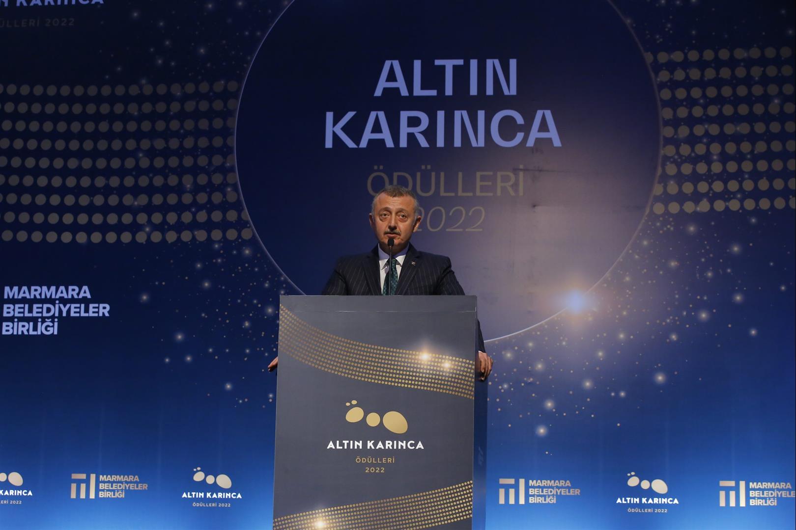 Toplantıda, birlik tarafından iyi uygulamaların ve projelerin ödüllendirildiği “Altın Karınca 2022” ödül töreni de Altın Karınca 2022’de; Afet Yönetimi, Akıllı Şehir Uygulamaları, İklim Değişikliği ve Çevre Yönetimi, Kentsel Mimari ve Tasarım, Kentsel Planlama ve Altyapı, Kültür ve Sanat, Sosyal Hizmetler, Ulaşım ve Hareketlilik, Yerel Kalkınma, Yönetişim ve Katılımcılık olmak üzere toplam 10 kategoride 49 proje ekibine ödüller eski Bilecik Valisi şuan Kocaeli Büyükşehir Belediye Başkanı ve MBB Başkanı olan Tahir Büyükakın tarafından takdim edildi.