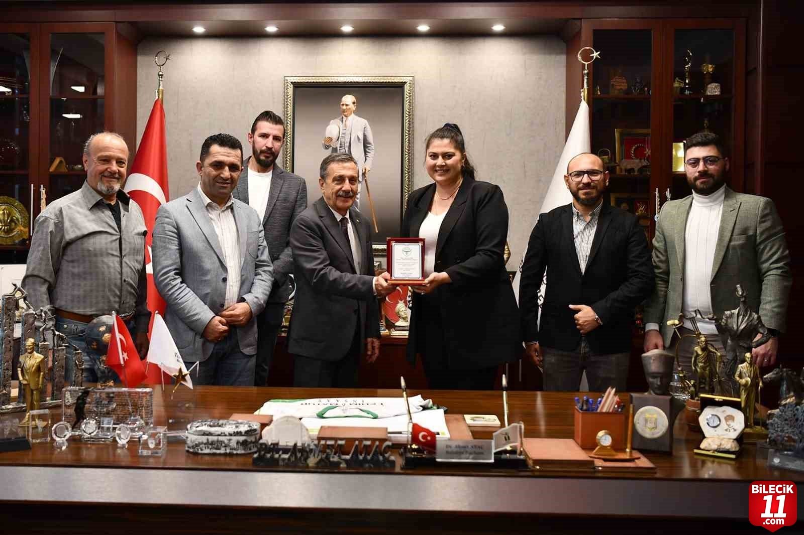 Ziyaretten duyduğu memnuniyeti dile getiren Başkan Ataç, her zaman sporun ve sporcunun yanında olduğunu belirterek, çalışmalarında başarılar diledi. – İHA