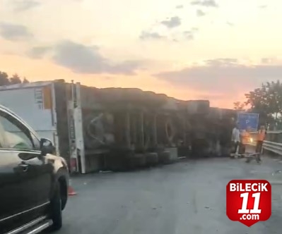 Bilecik’in Bayırköy Beldesinde su dolu tırın devrilmesi sonucunda sürücü yaralanırken, kaza sebebiyle trafik akışı durma noktasına geldi.